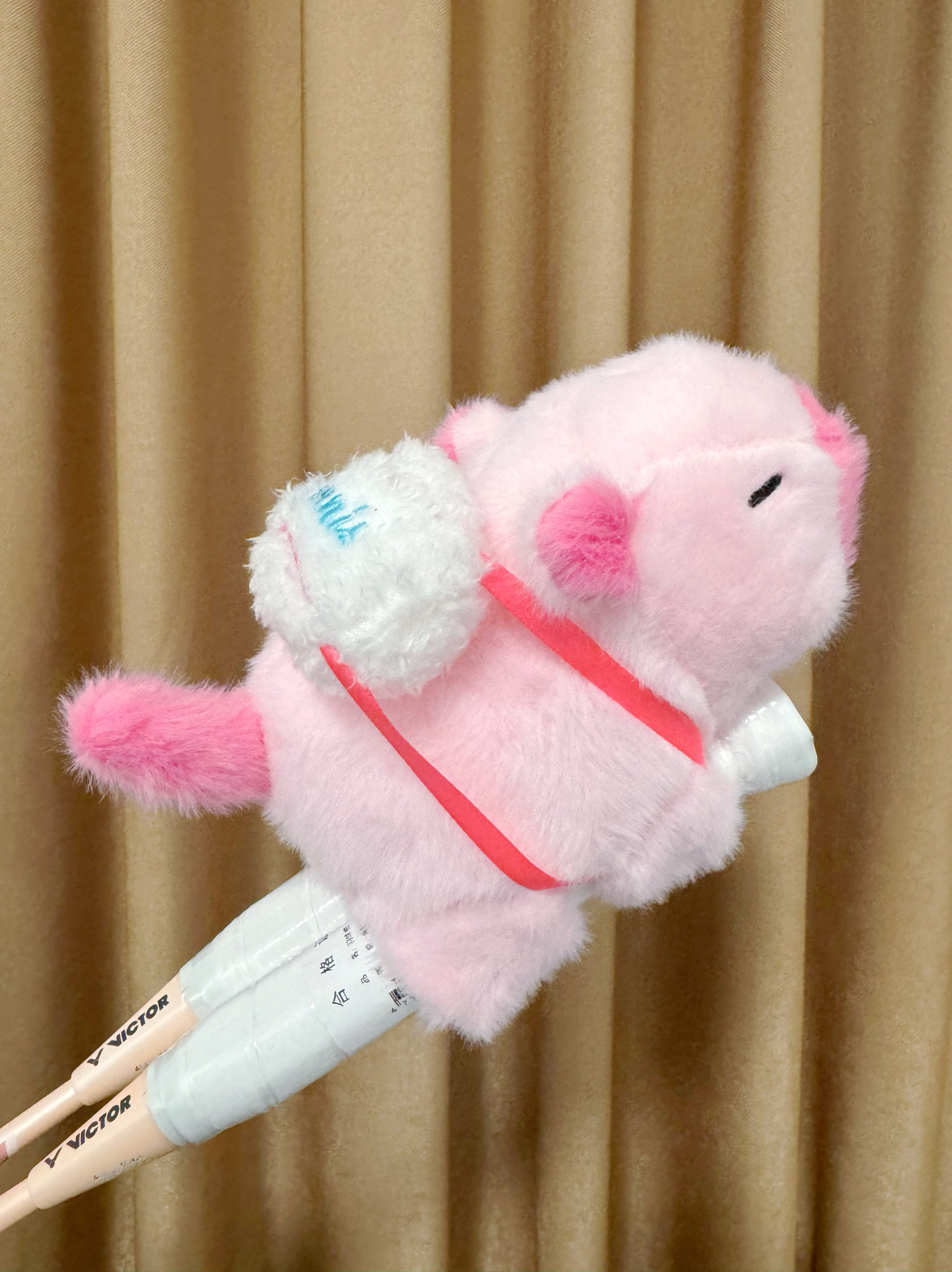 卡皮巴拉羽毛球拍手柄保护套保护挂件创意毛绒玩偶可握两支球拍