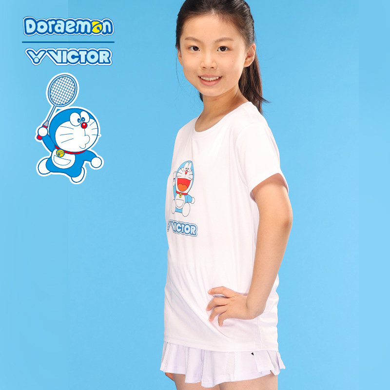 2025多啦A梦系列VICTOR/威克多胜利羽毛球服针织儿童短袖T恤504JR