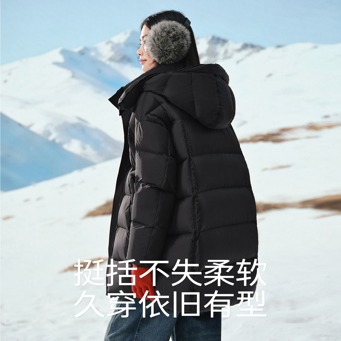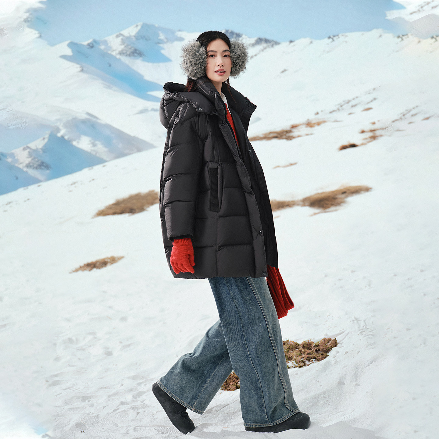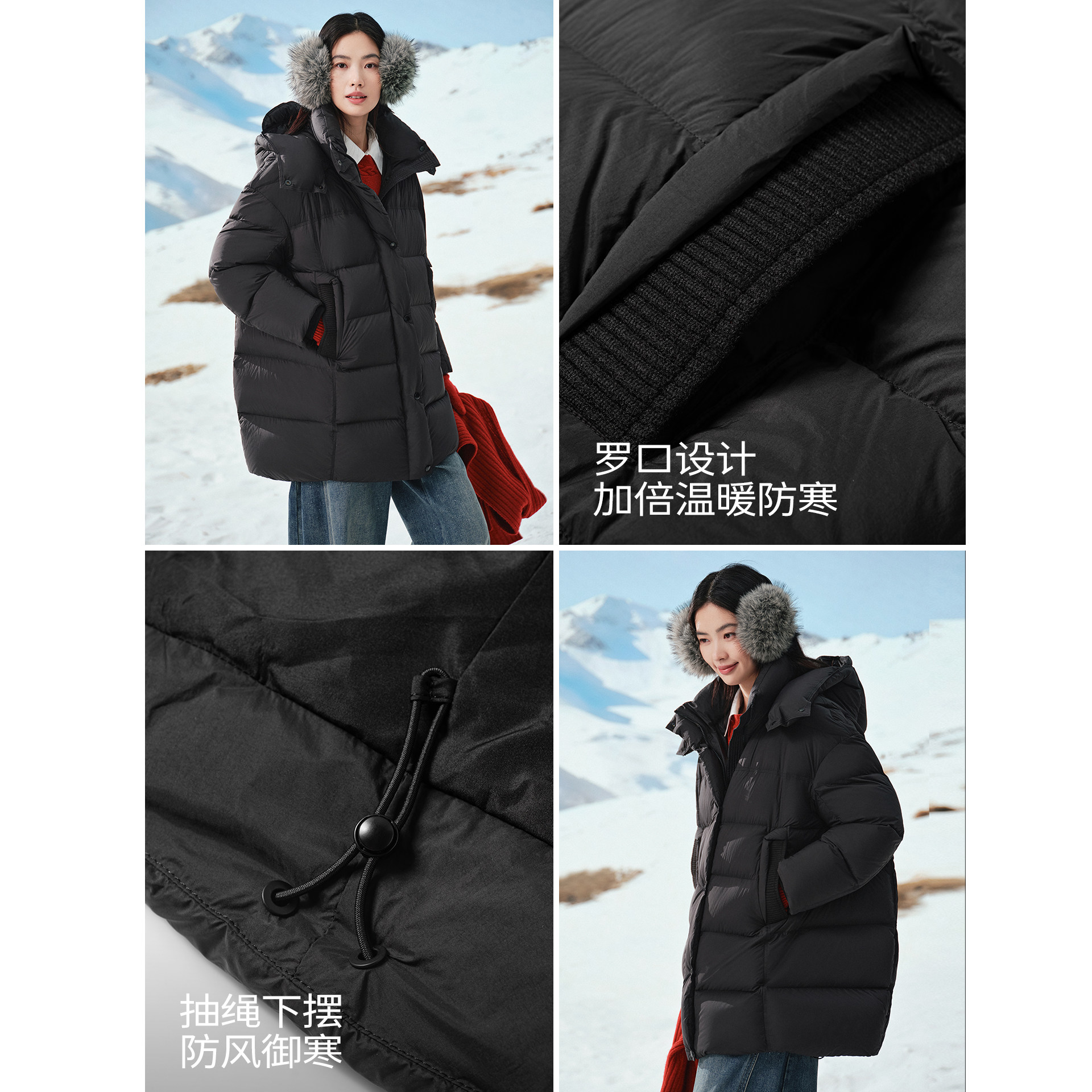 衣香丽影黑色连帽羽绒服女士中长款2025冬装新款高充绒量90绒外套