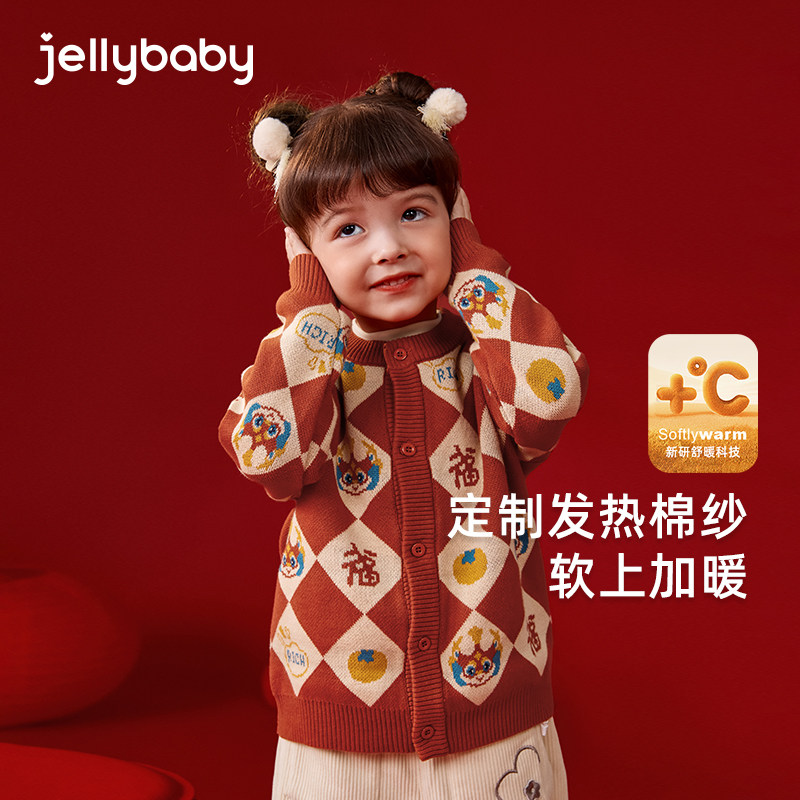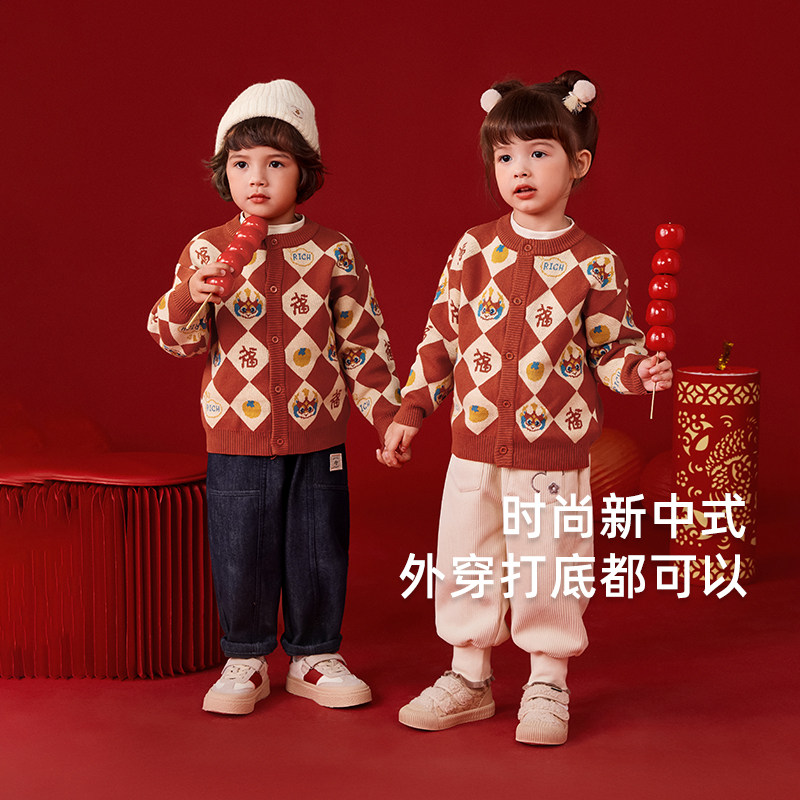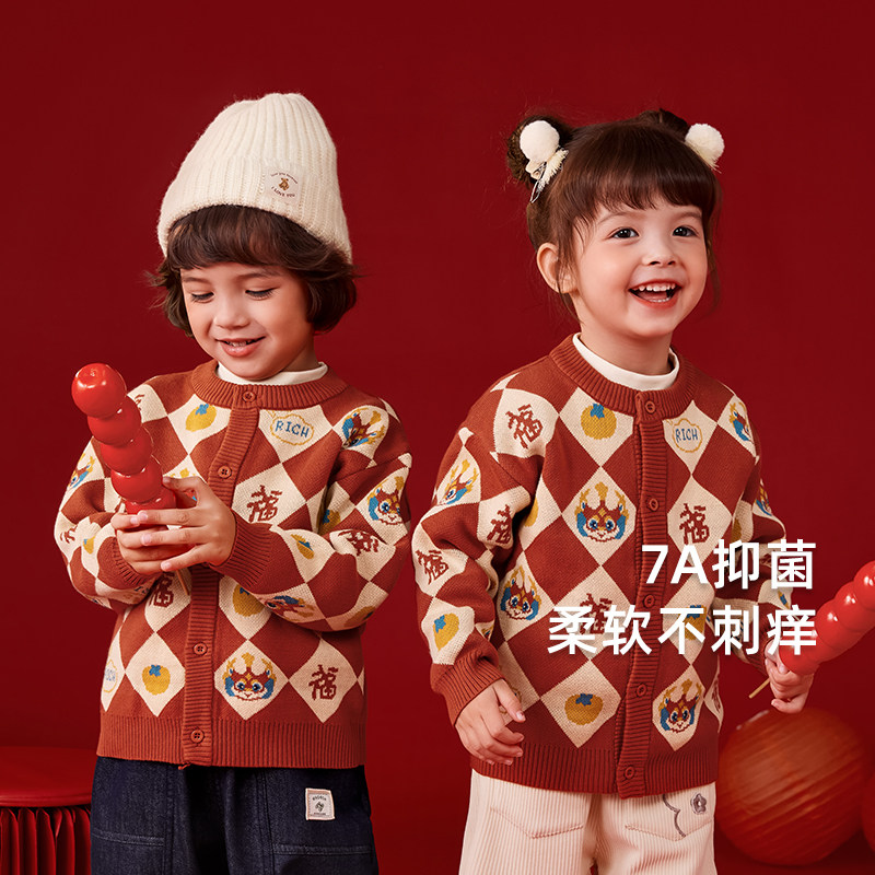 儿童毛衣外套冬季女童冬装小童拜年洋气宝宝红色男童针织开衫秋冬