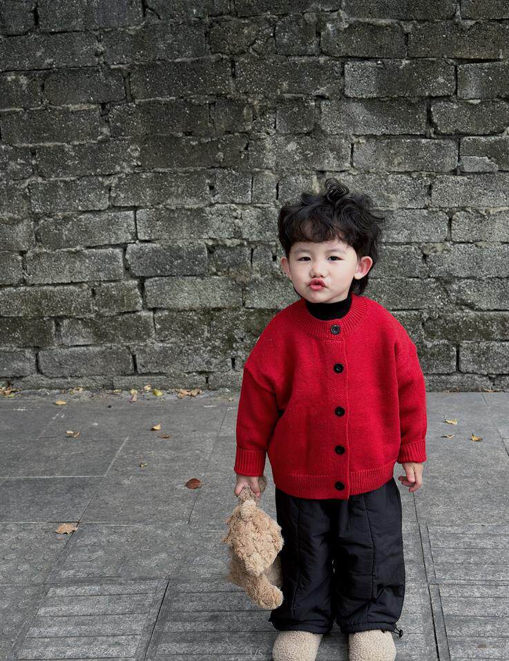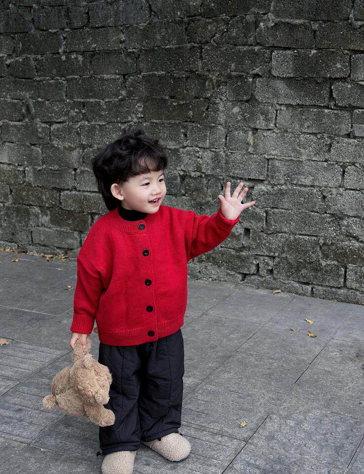 儿童红色针织毛衣男童女童韩版秋季毛衫婴儿小童宝宝洋气秋冬开衫