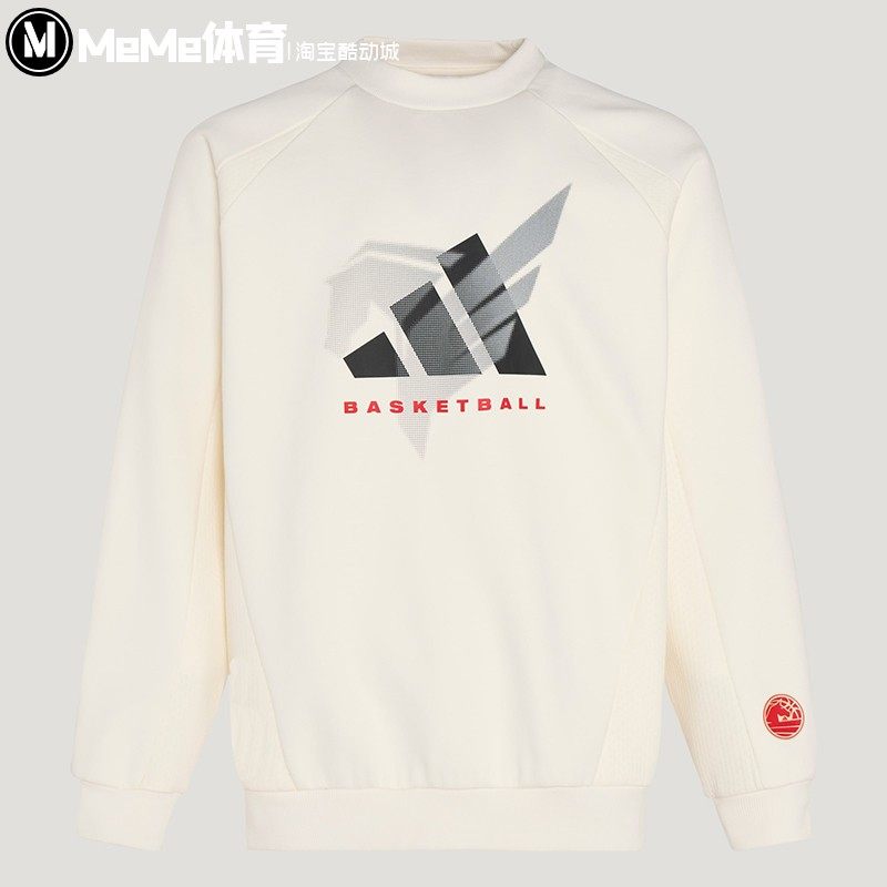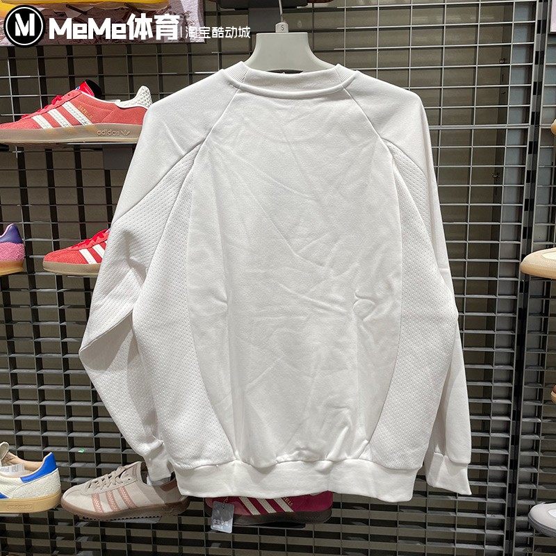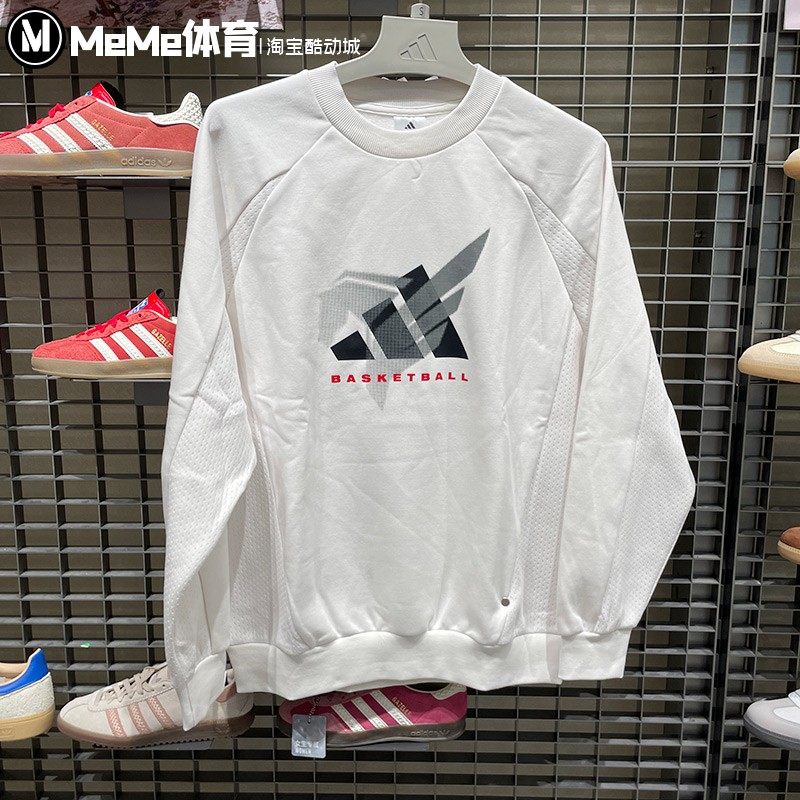 阿迪达斯男卫衣2026新春款篮球白色针织加绒宽松圆领套头衫KT0625