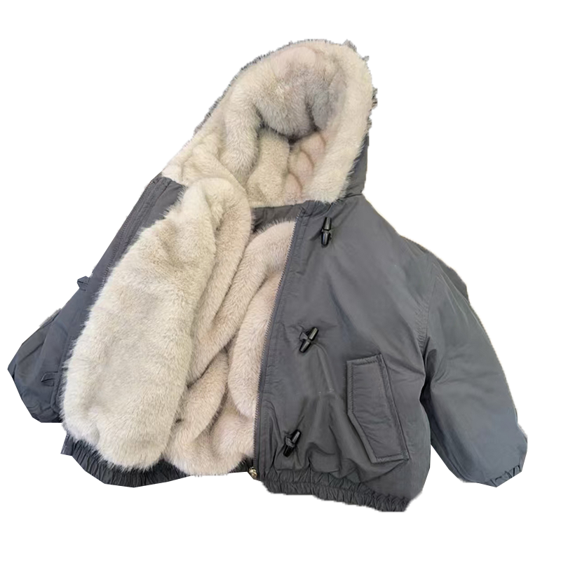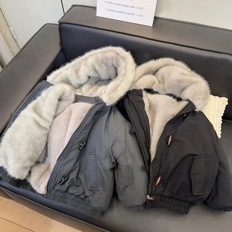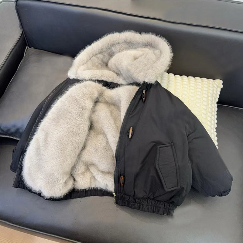 女童外套冬装2026新款洋气儿童时髦加绒毛毛连帽上衣女孩冬季衣服