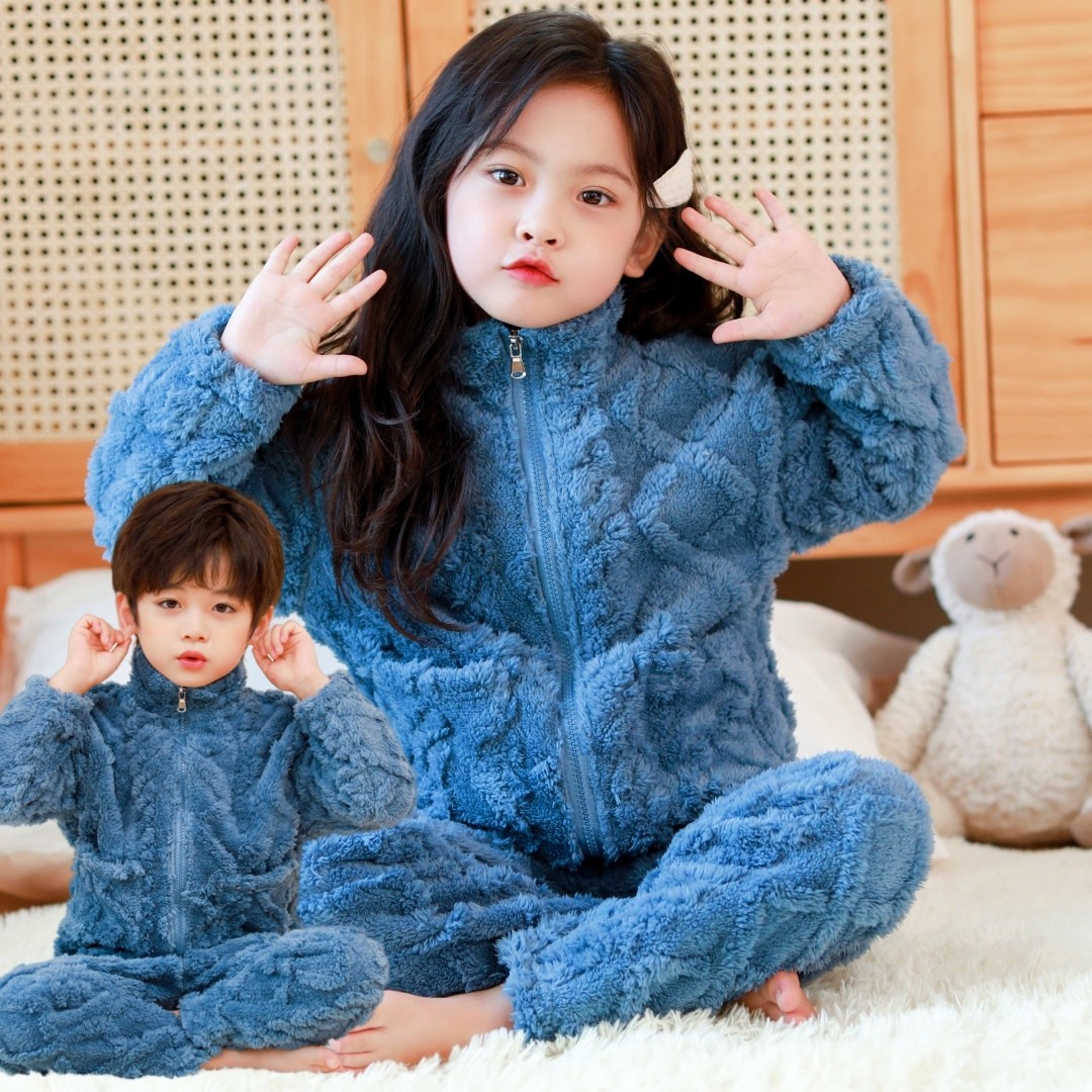 儿童睡衣法兰绒秋冬季加厚款珊瑚绒女童家居服大男童小孩加绒宝宝