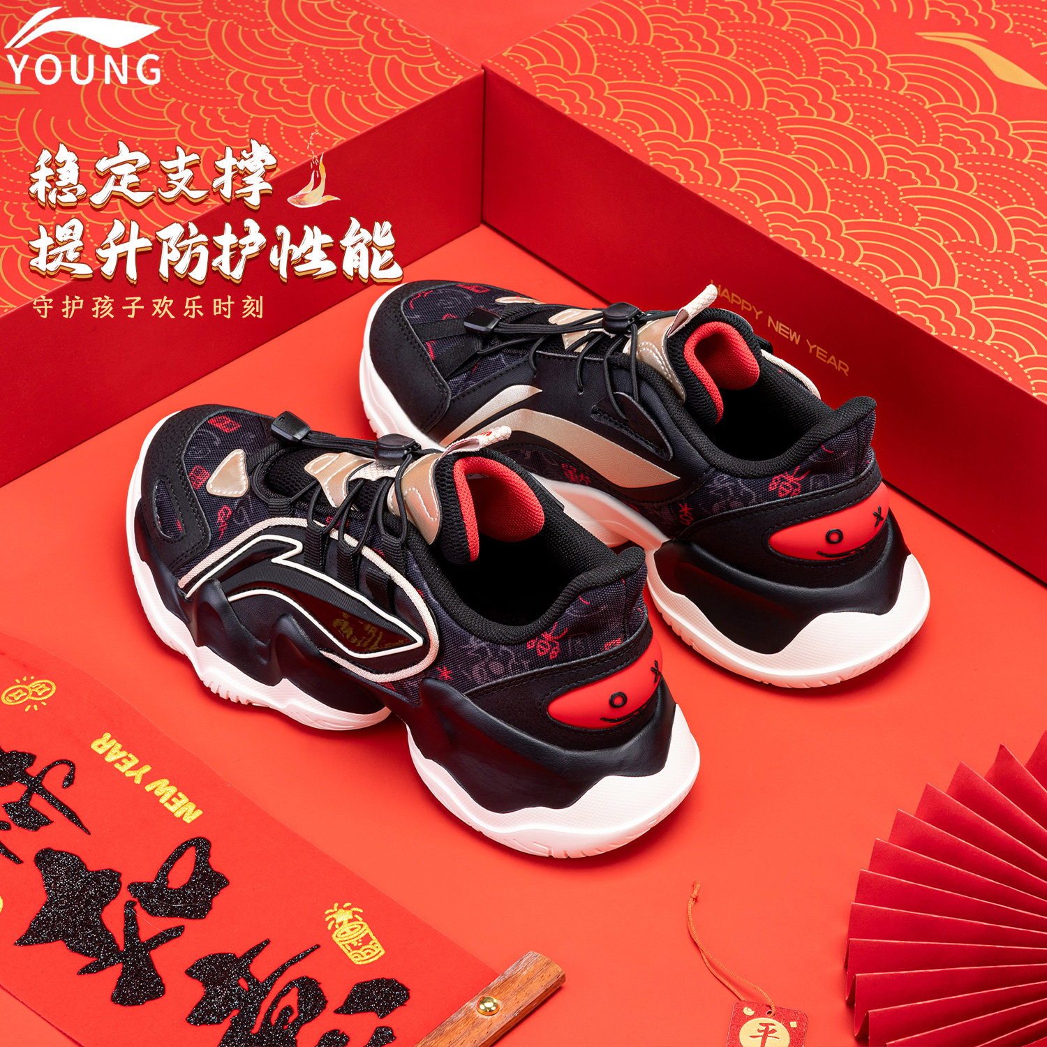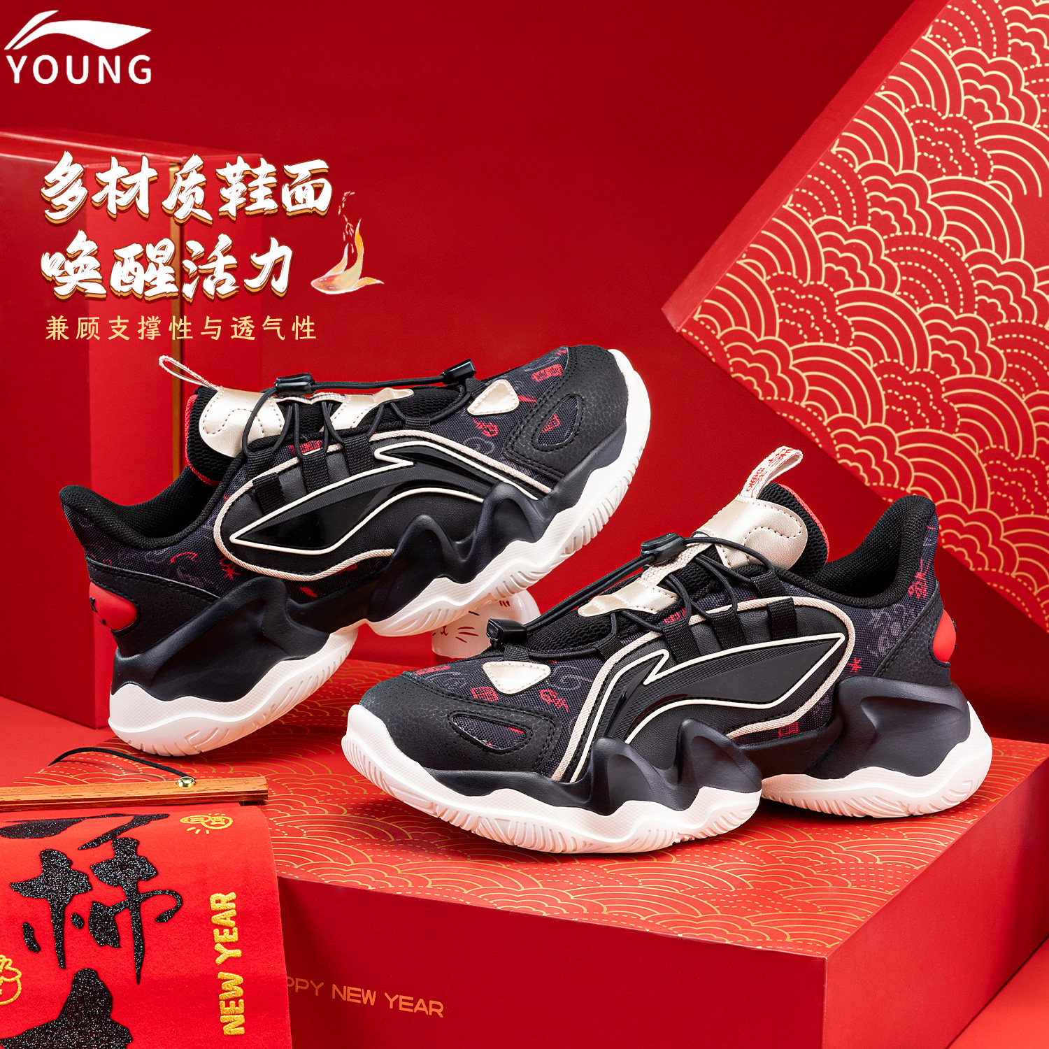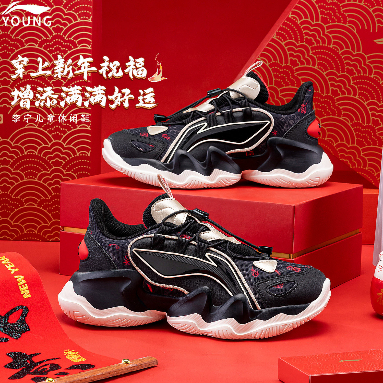 李宁儿童鲲鹏运动鞋新年新款青少年男童冬童鞋官方旗舰正品跑步鞋