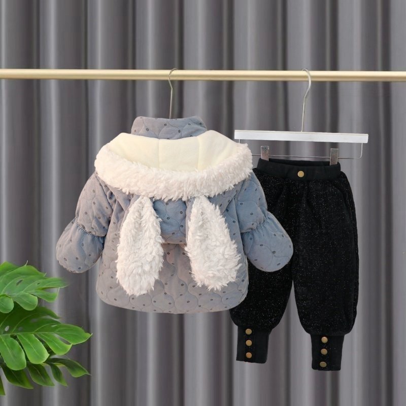 女童加绒套装秋冬季2026新款洋气时髦女宝宝巨好看棉服冬装两件套