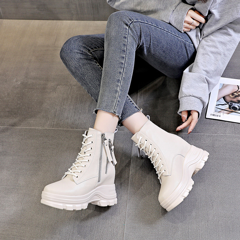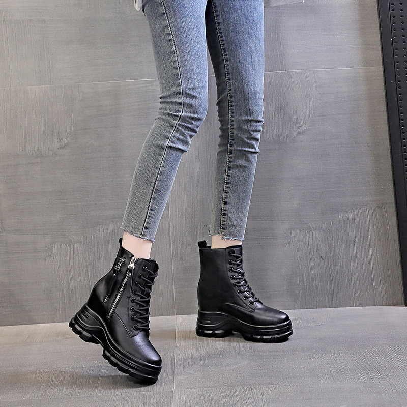 圣恩熙 9cm内增高马丁靴女2026新款早春爆款舒适真皮女士短筒靴子