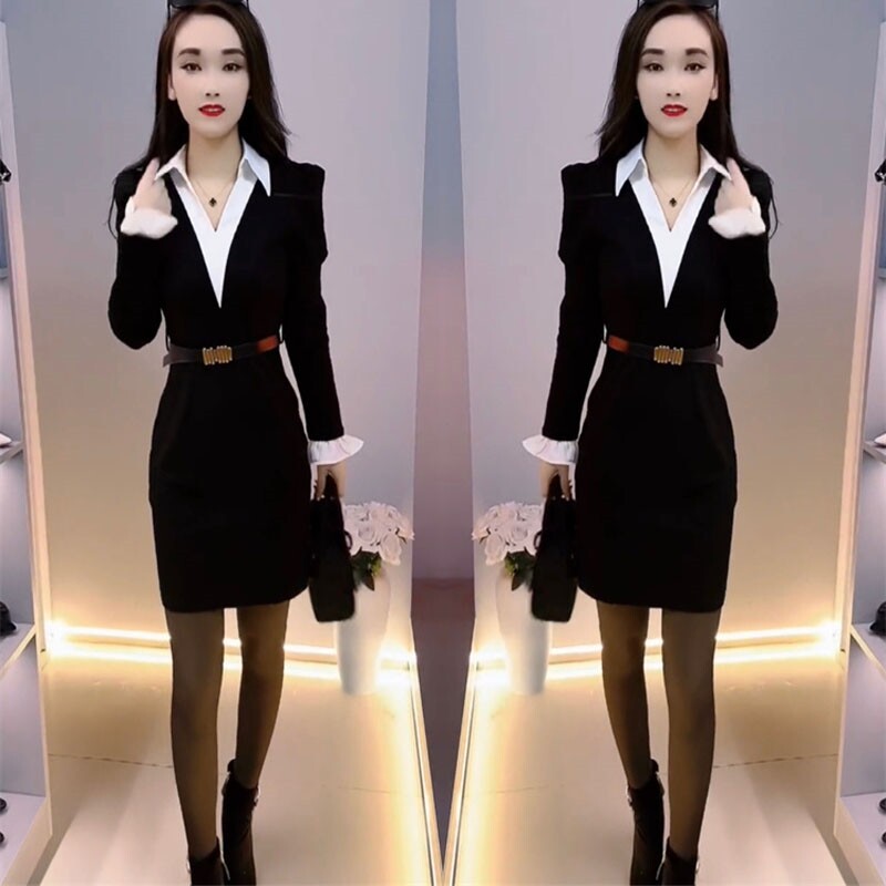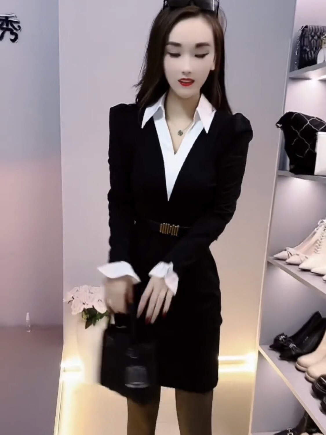 网红爆款时尚连衣裙女2026春季新款性感白色衬衫拼接显瘦小黑裙潮