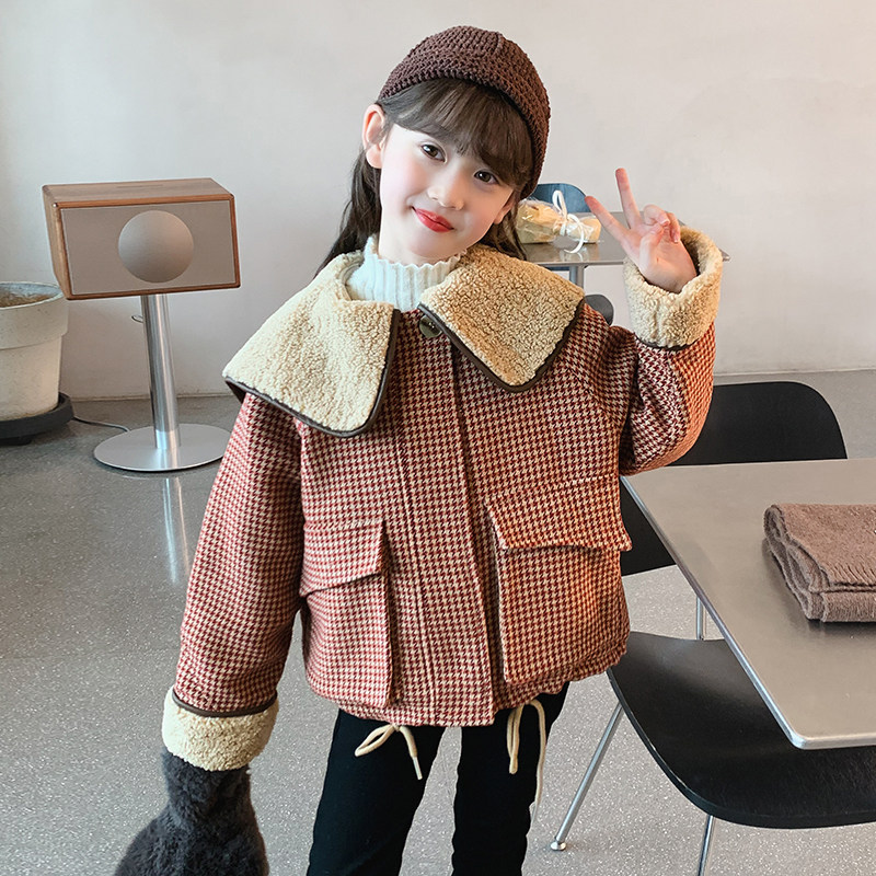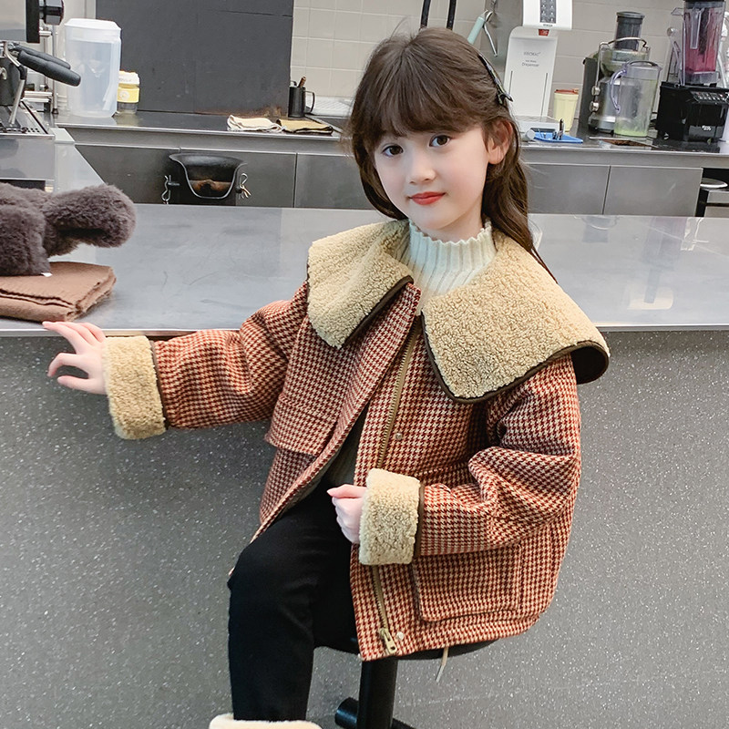 女童外套秋冬款2026新款儿童加厚一体绒毛呢大衣冬装女孩夹棉风衣