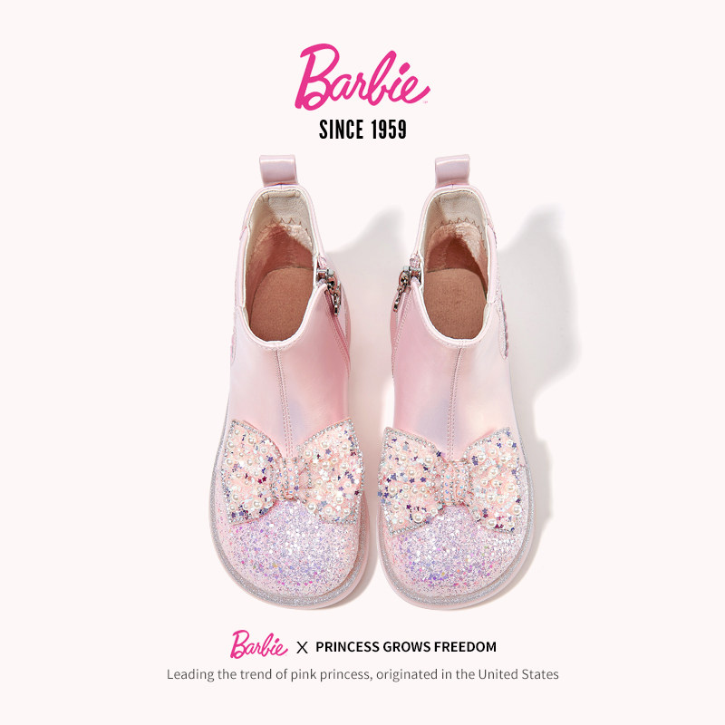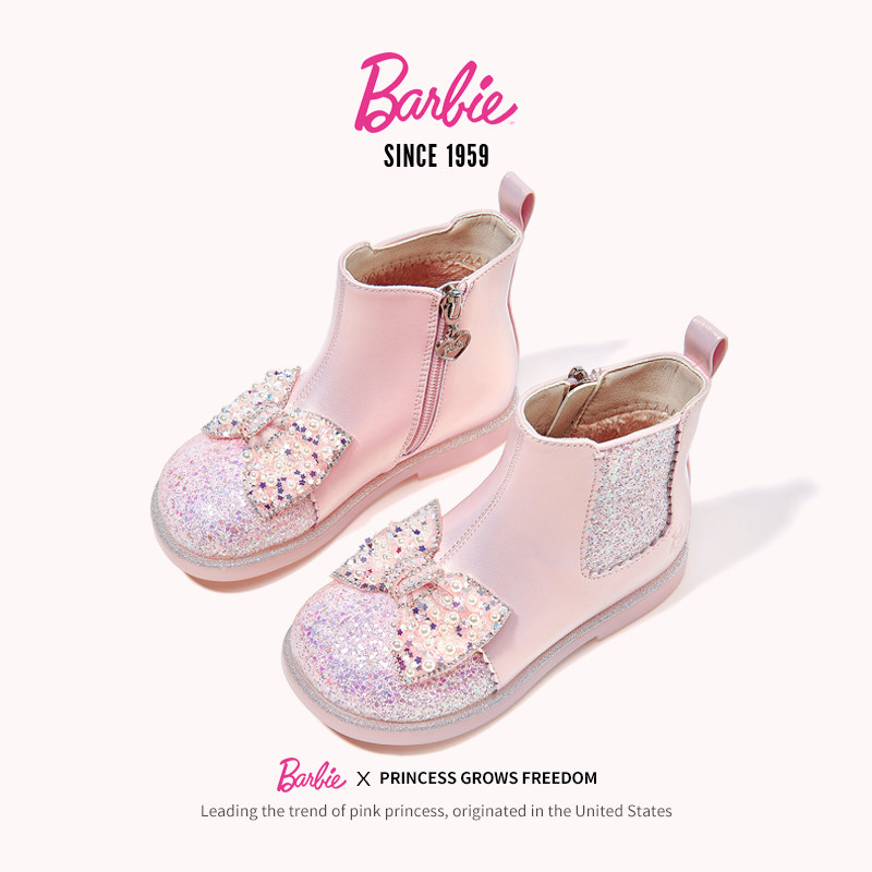 311线报网描述:barbie芭比公主系列 女童时尚加绒水晶靴