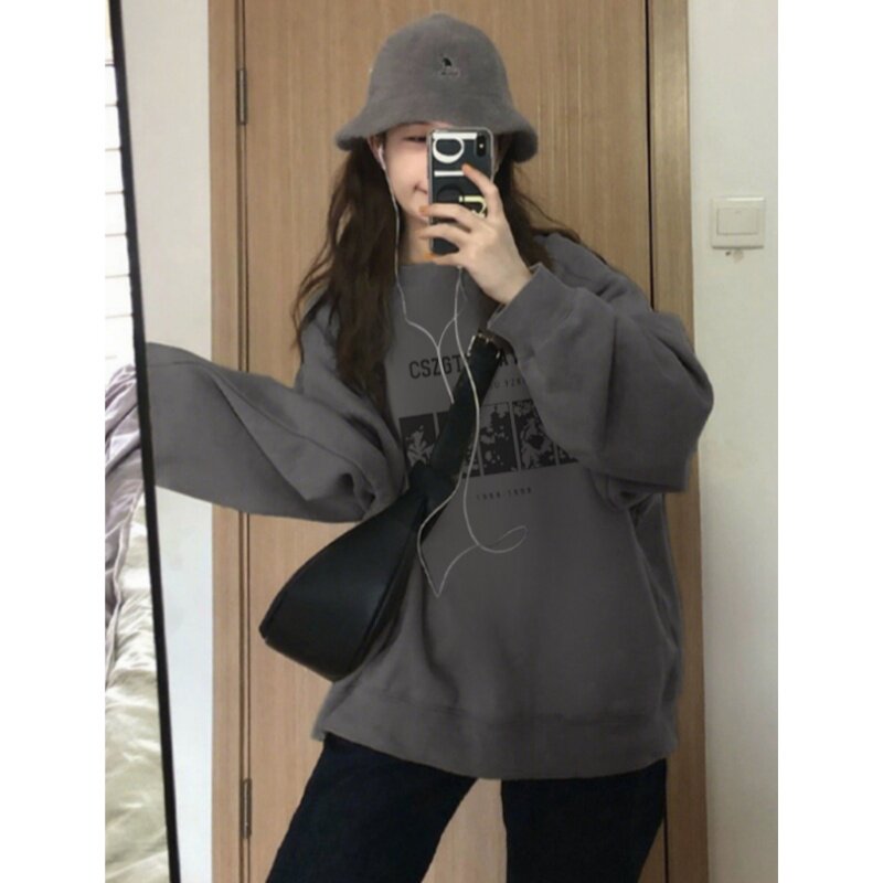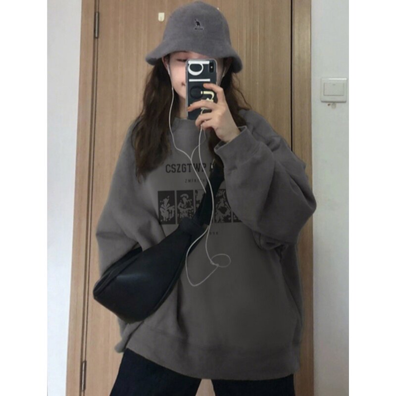 大码卫衣外套女款秋冬季新款爆款2026圆领深灰色慵懒风宽松上衣服