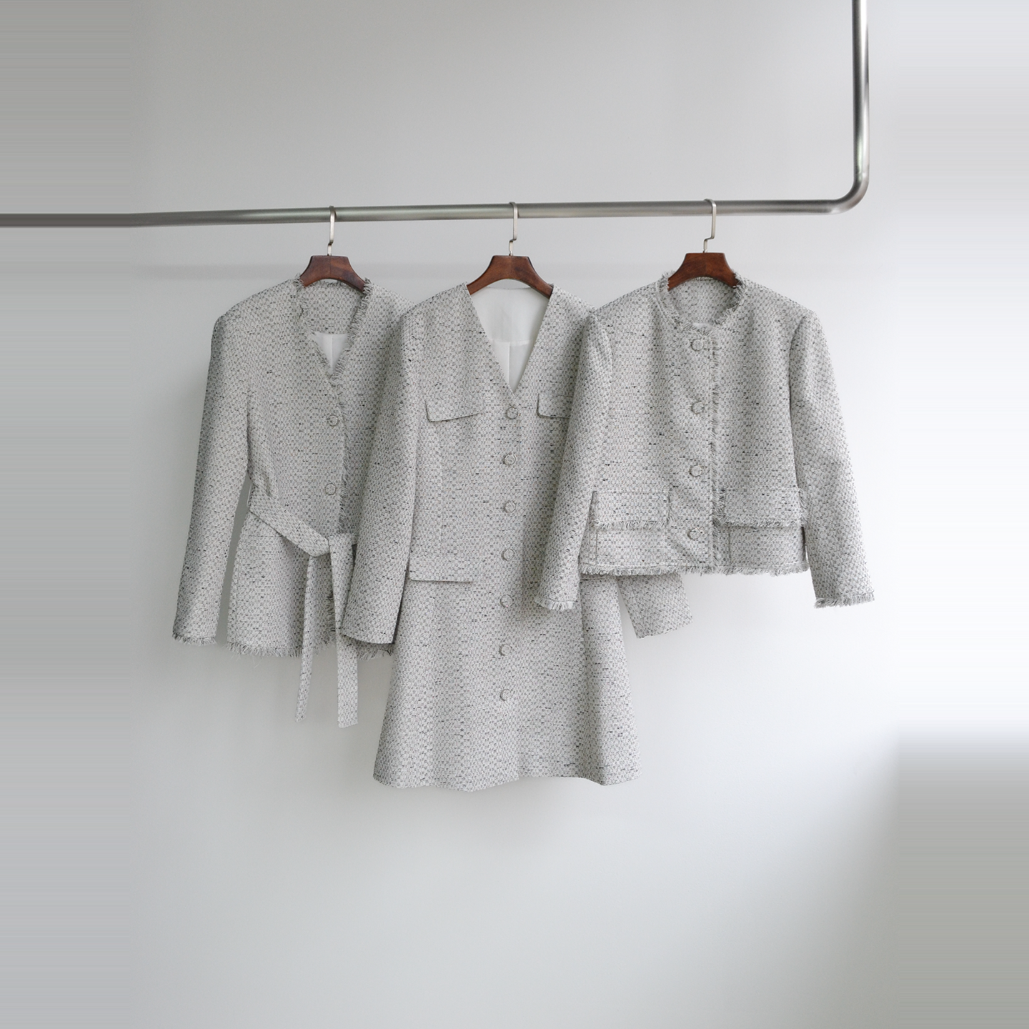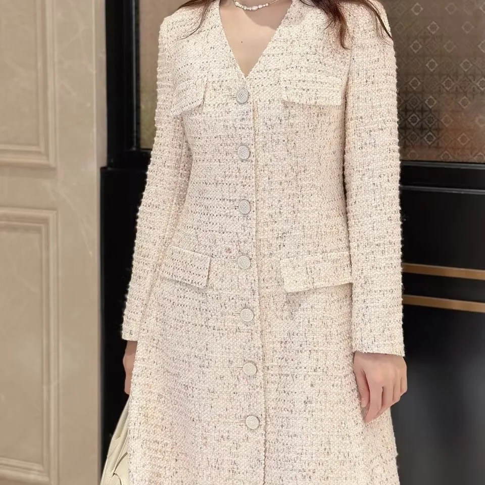 小香风流苏圆领长袖收腰外套+短外套+连衣裙 女25新款小个子高级