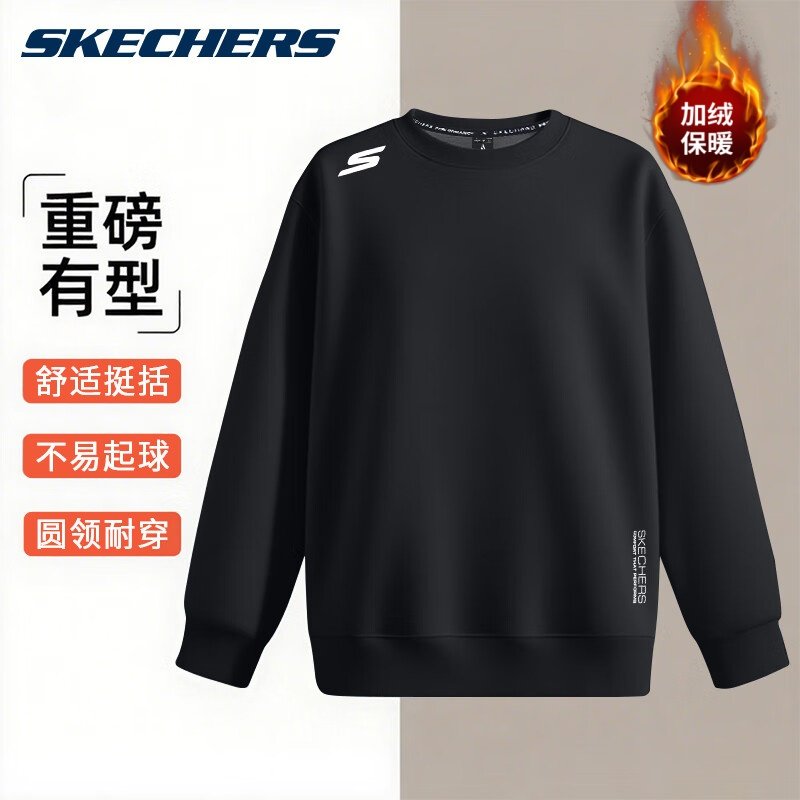 斯凯奇加绒卫衣男2026冬季新款加厚保暖青少年初中生圆领运动上衣