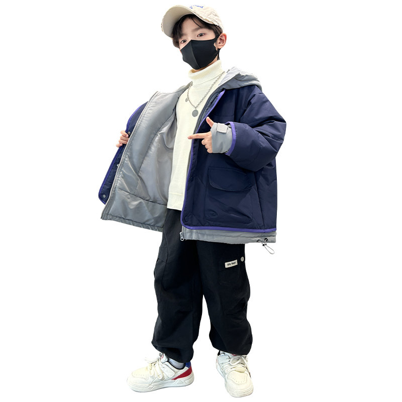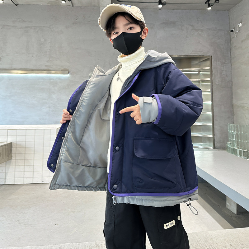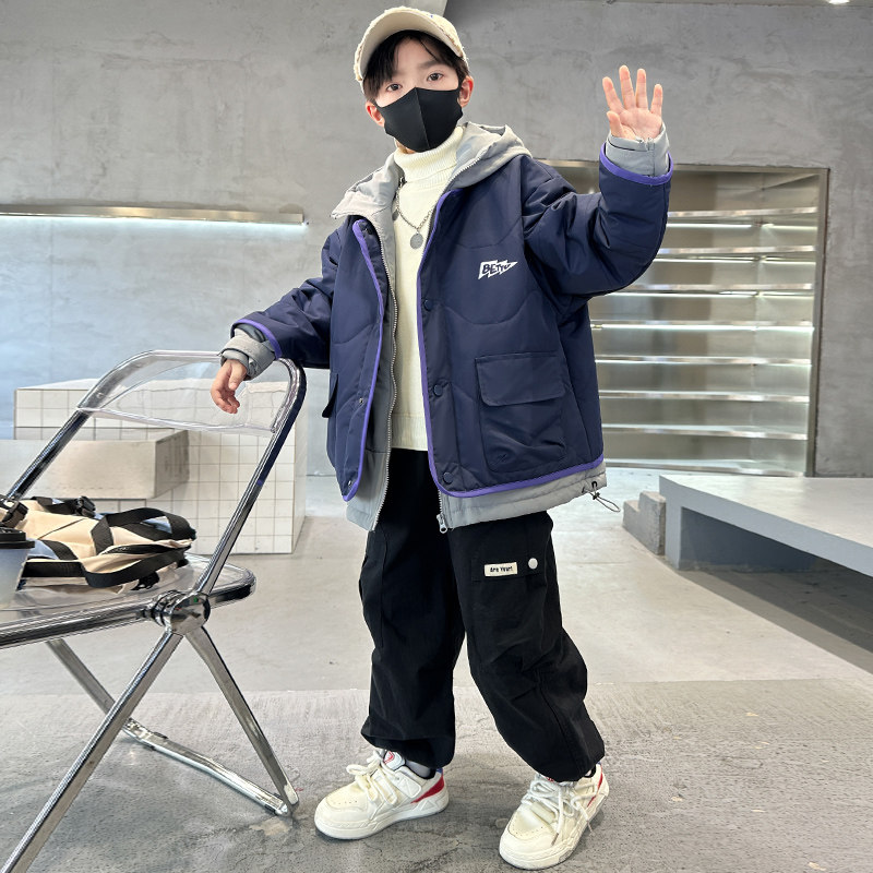 男童冬季棉衣外套2025新款洋气中大童冬装假两件时髦痞帅羽绒棉服