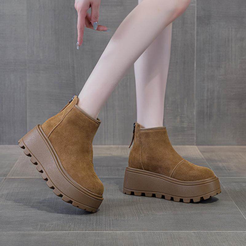 真皮雪地靴女2026新款冬季厚底内增高短靴爆款加绒加厚马丁靴棉鞋