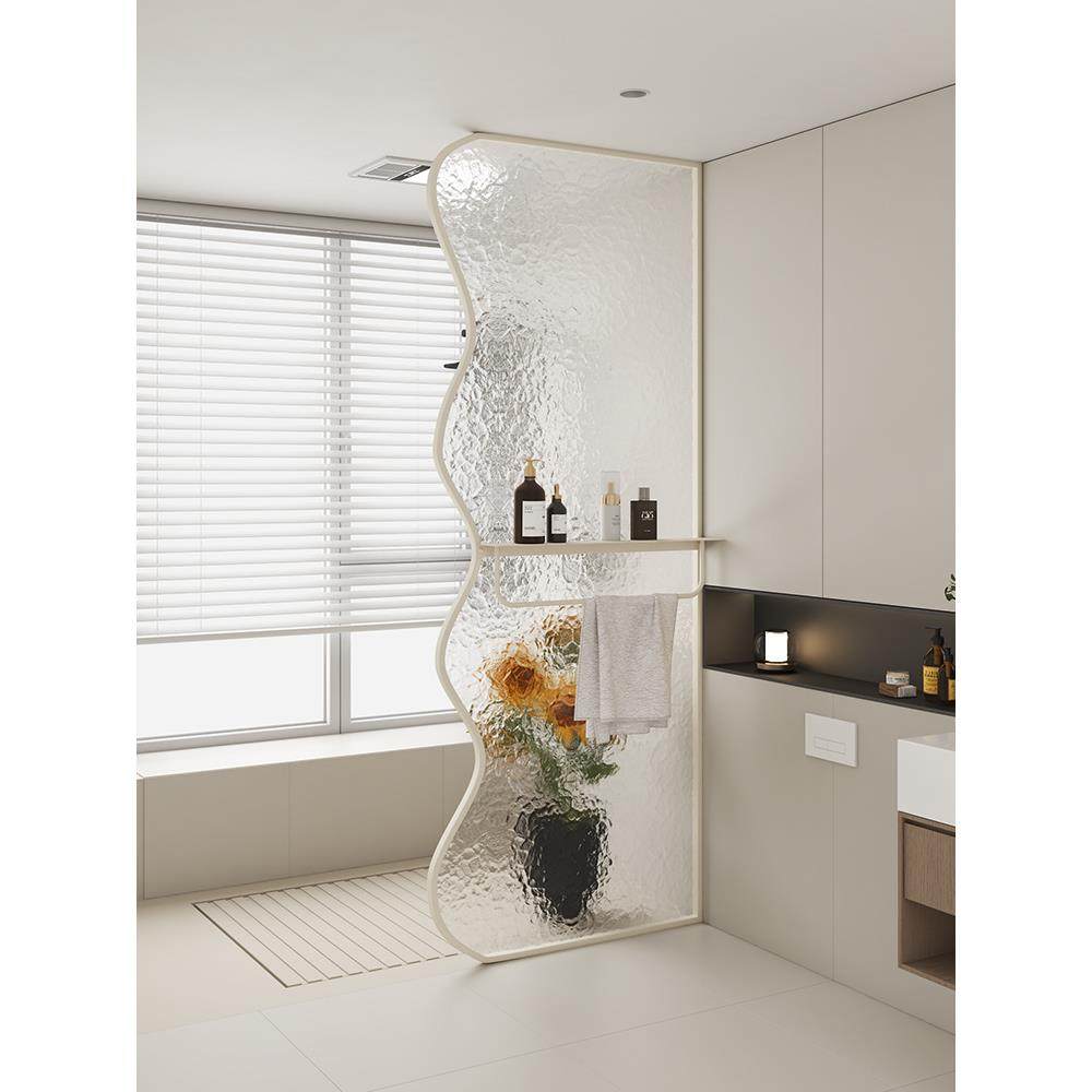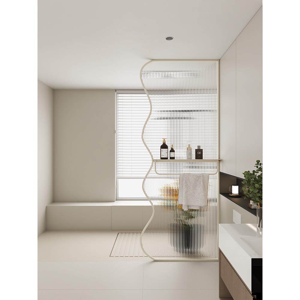 奶油风客厅玻璃屏风隔断卫生间干湿分离铁艺不锈钢铝合金浴室隔断