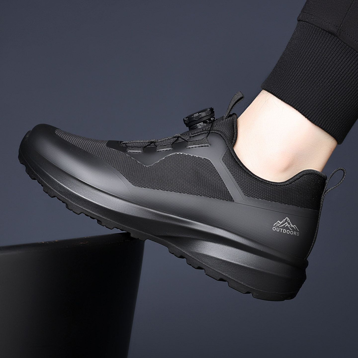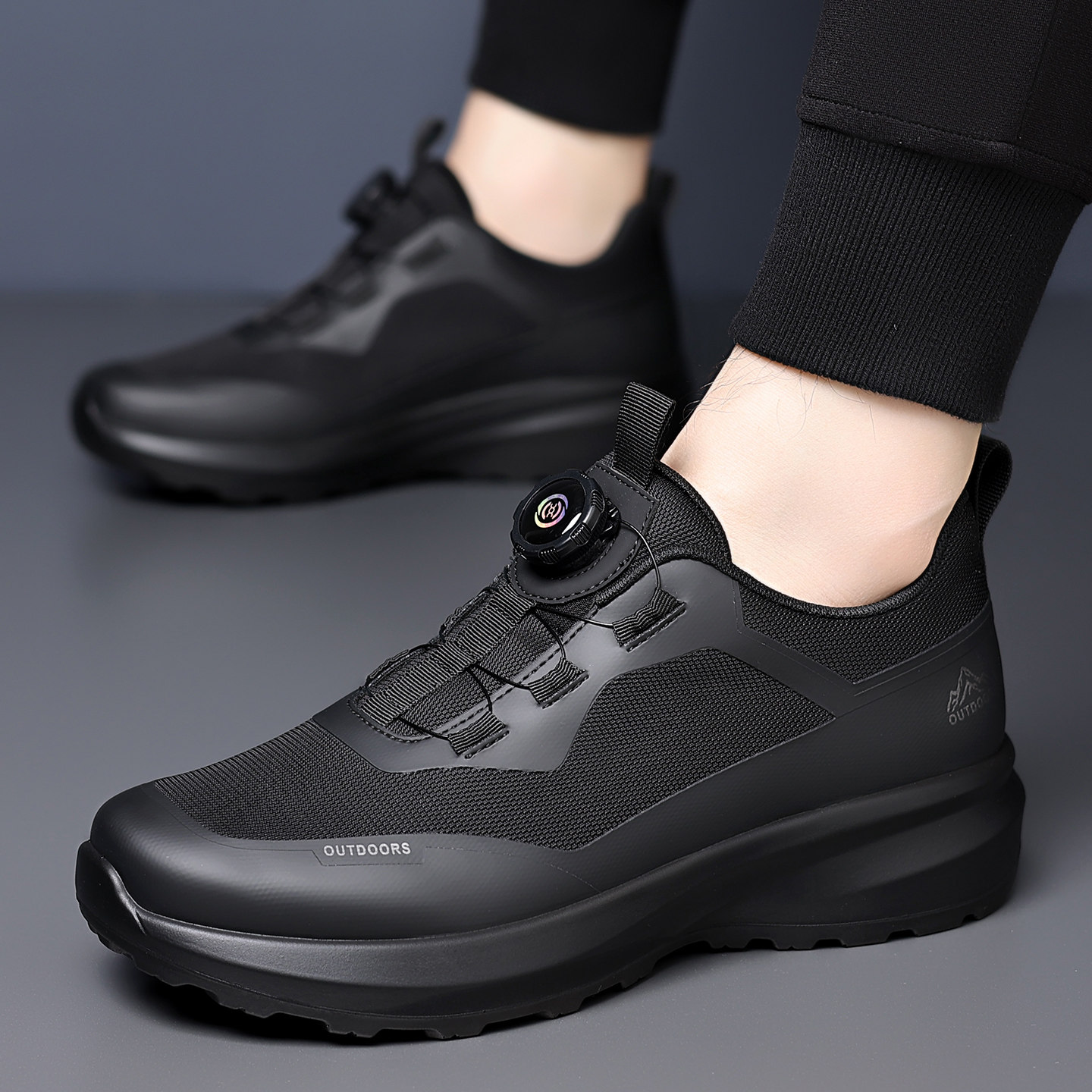 男鞋2026新款冬季潮流飞织透气黑色跑步运动鞋休闲百搭旋钮老爹鞋