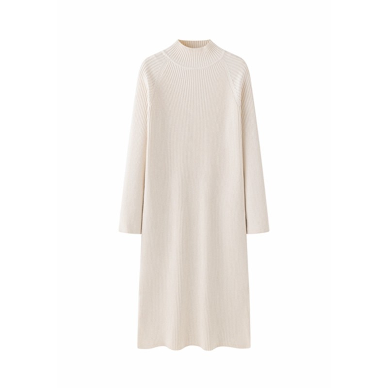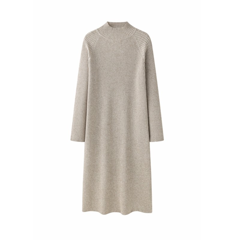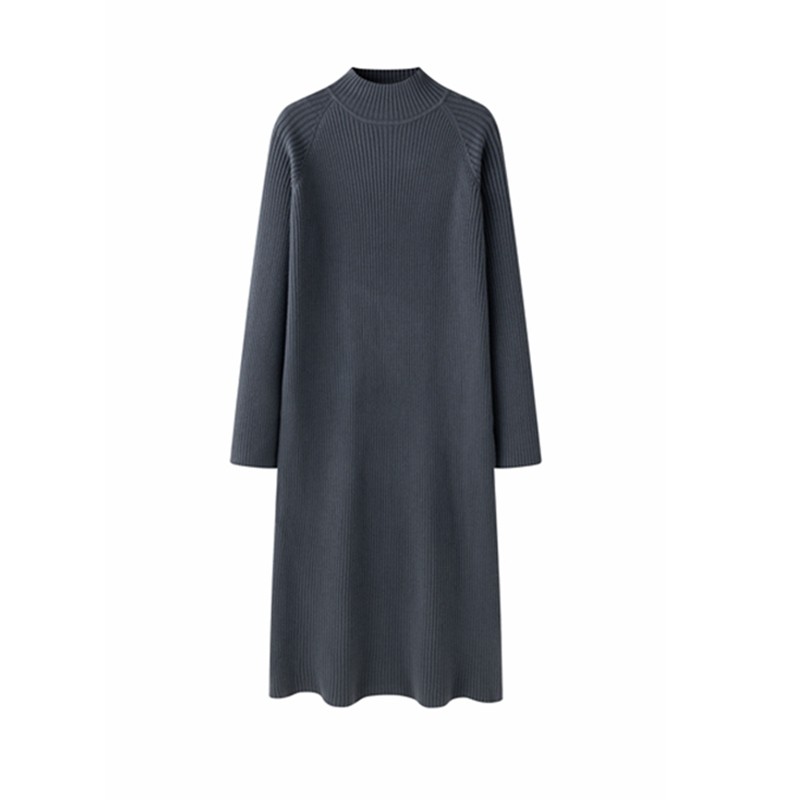 羊毛长袖针织连衣裙女秋冬新款配大衣内搭中长款过膝半高领毛衣裙