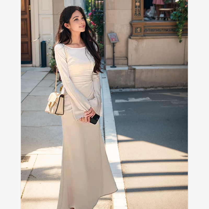 温柔气质法式白色连衣裙女高级感敬酒服长袖订婚礼服缎面领证长裙
