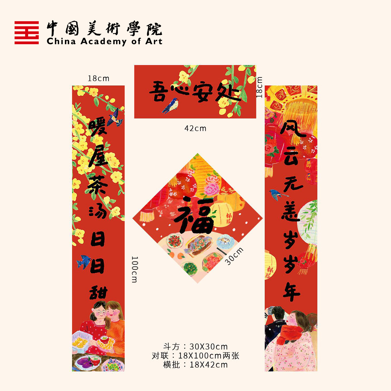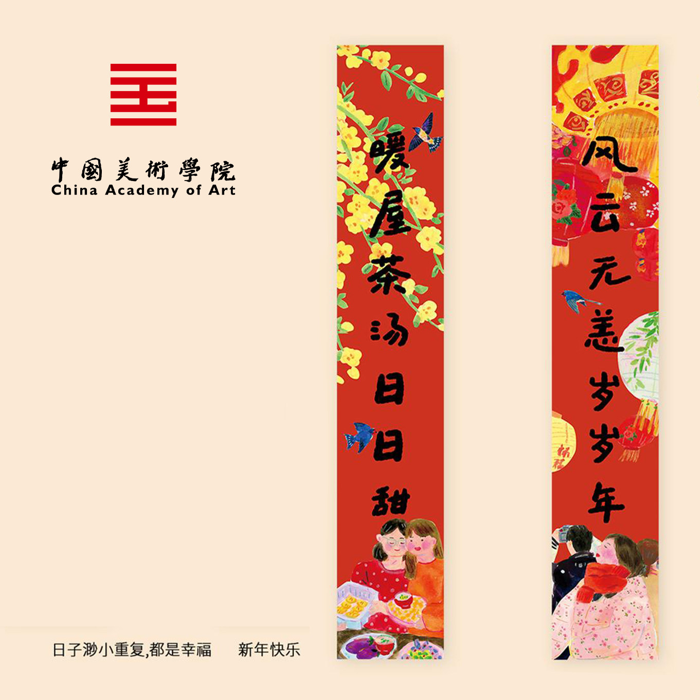 中国美术学院2026马年插画创意对联新年福字门对子过年门贴春联