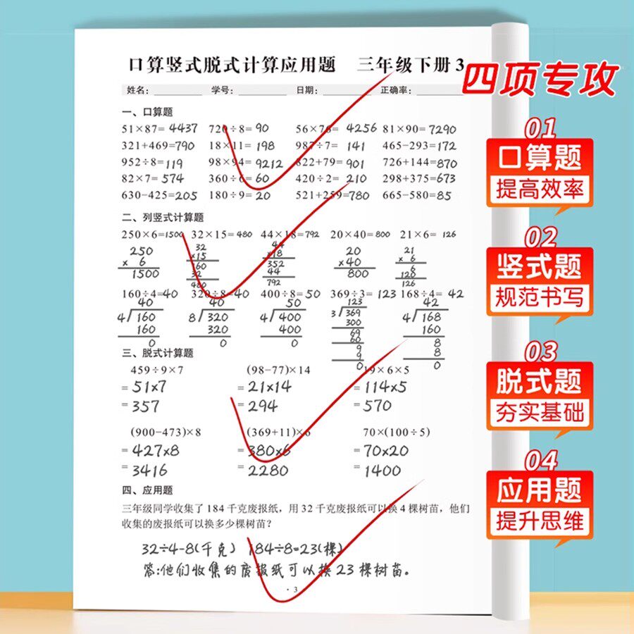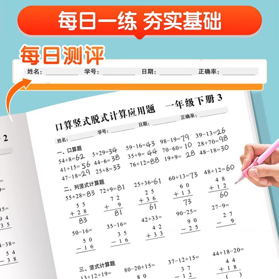 口算题天天练人教版一年级二年级三年级数学计算题每日一练小学上下册专项训练加减乘除法速算题卡列脱式竖式应用题思维训练
