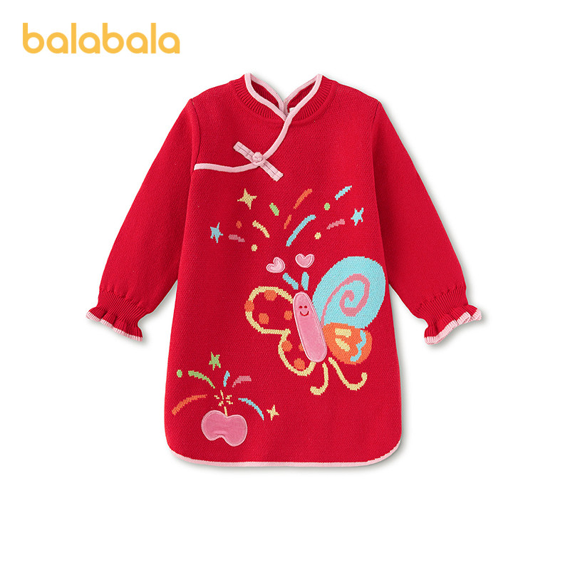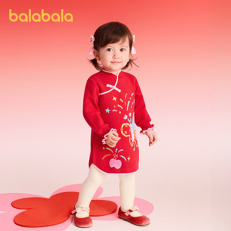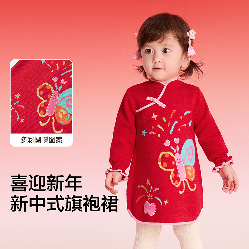 巴拉巴拉儿童连衣裙女童新中式旗袍裙春装2026新款红色新年拜年服