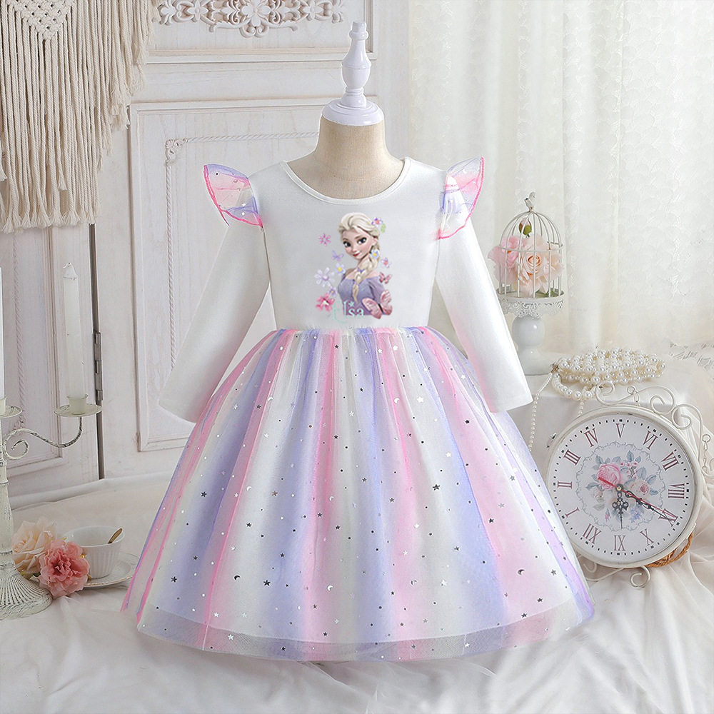 女童连衣裙长袖春秋童装新款女孩艾莎公主裙儿童裙子冰雪奇缘