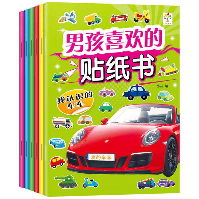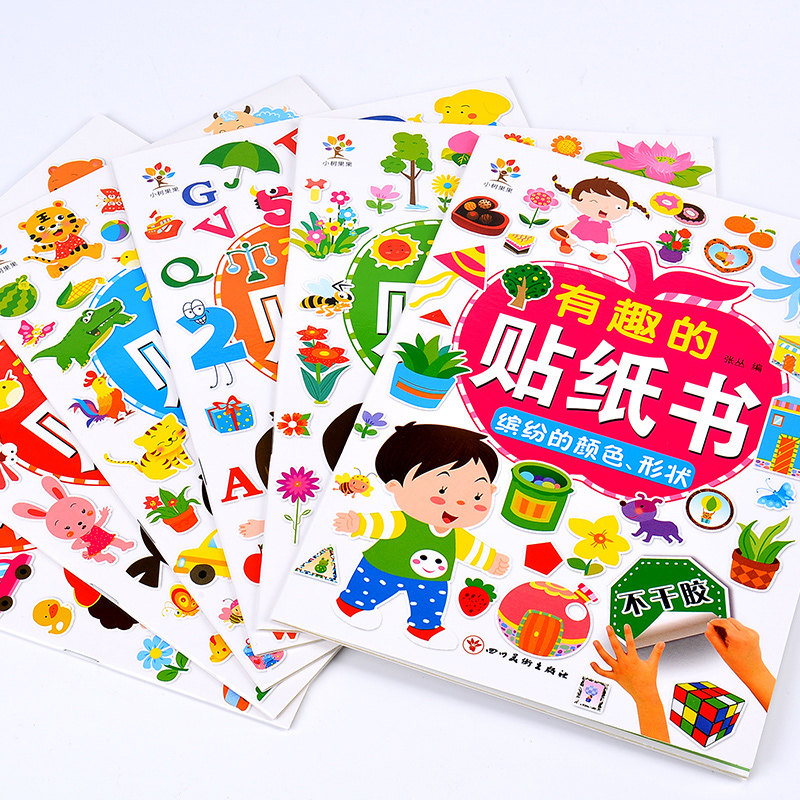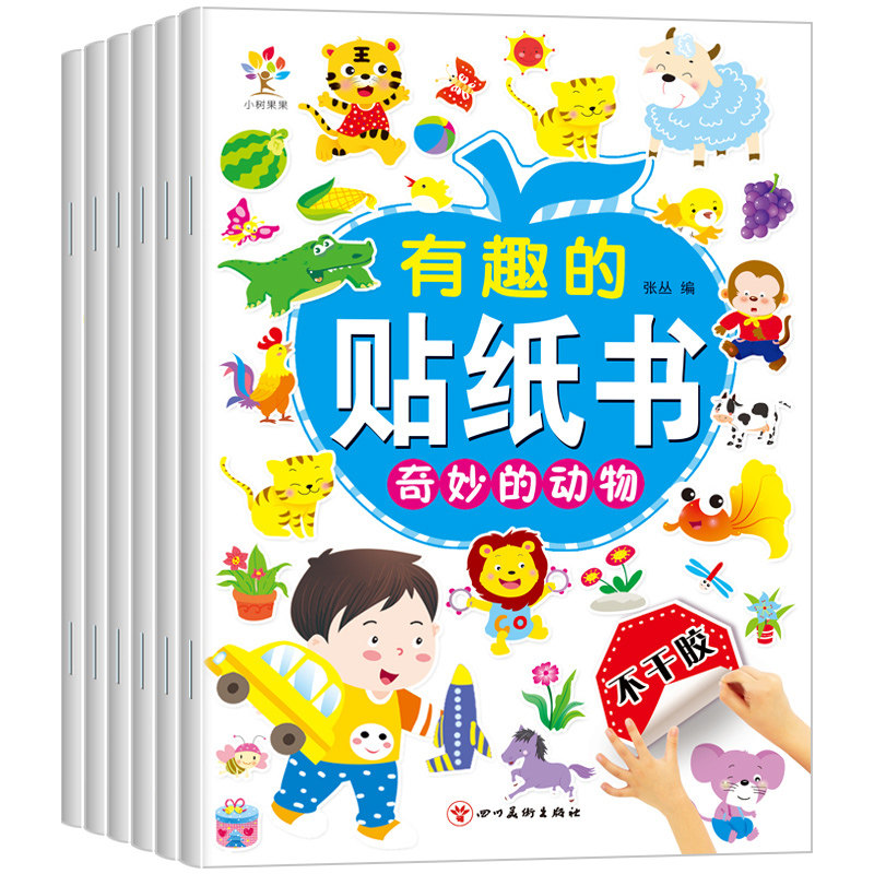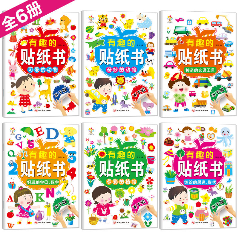 动物贴纸书2-3-5-6岁4幼儿童专注力贴贴画卡通宝宝贴粘贴益智玩具男孩子喜欢的植物交通工具字母贴纸书数学启蒙思维训练游戏粘画