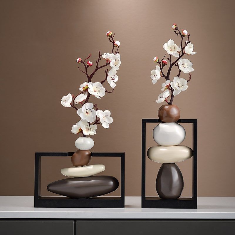 时来运转花瓶中式石头摆件创意高级感装饰品家居茶室民宿花瓶摆件
