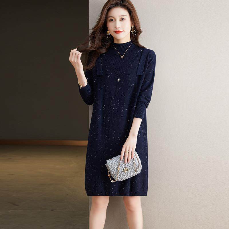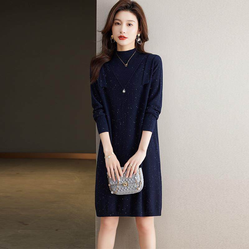配大衣羊毛连衣裙女秋冬2025新款加厚中长款羊毛针织打底衫毛衣裙