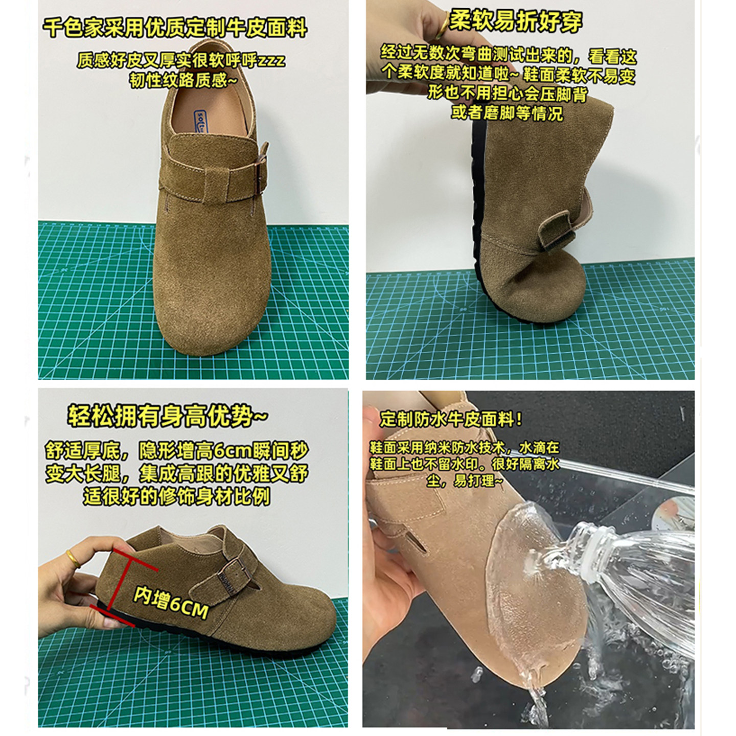 真皮防水~内增高勃肯鞋女2025秋新款爆款全包鞋子小个子厚底单鞋