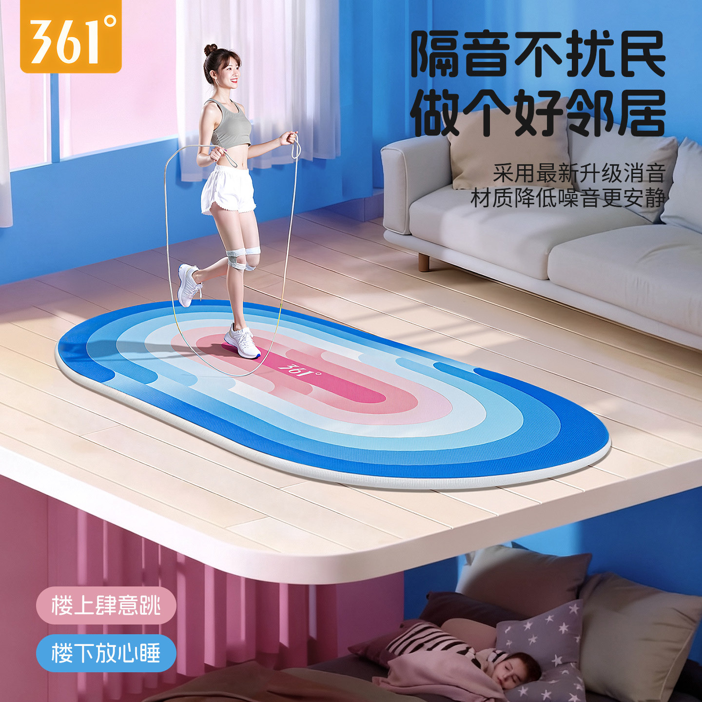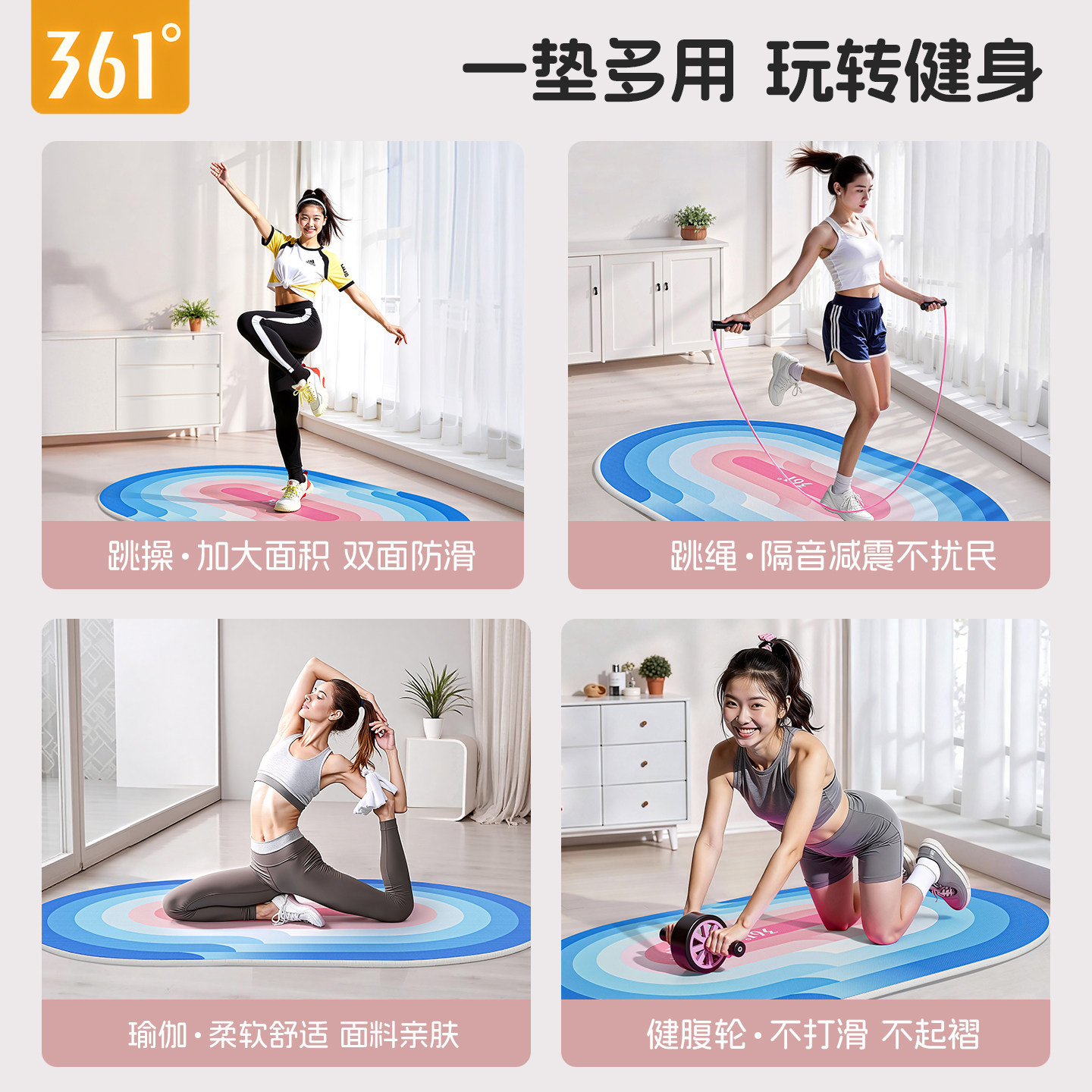 361跳绳减震垫瑜伽垫专业隔音家用静音防滑健身垫室内加厚地垫子