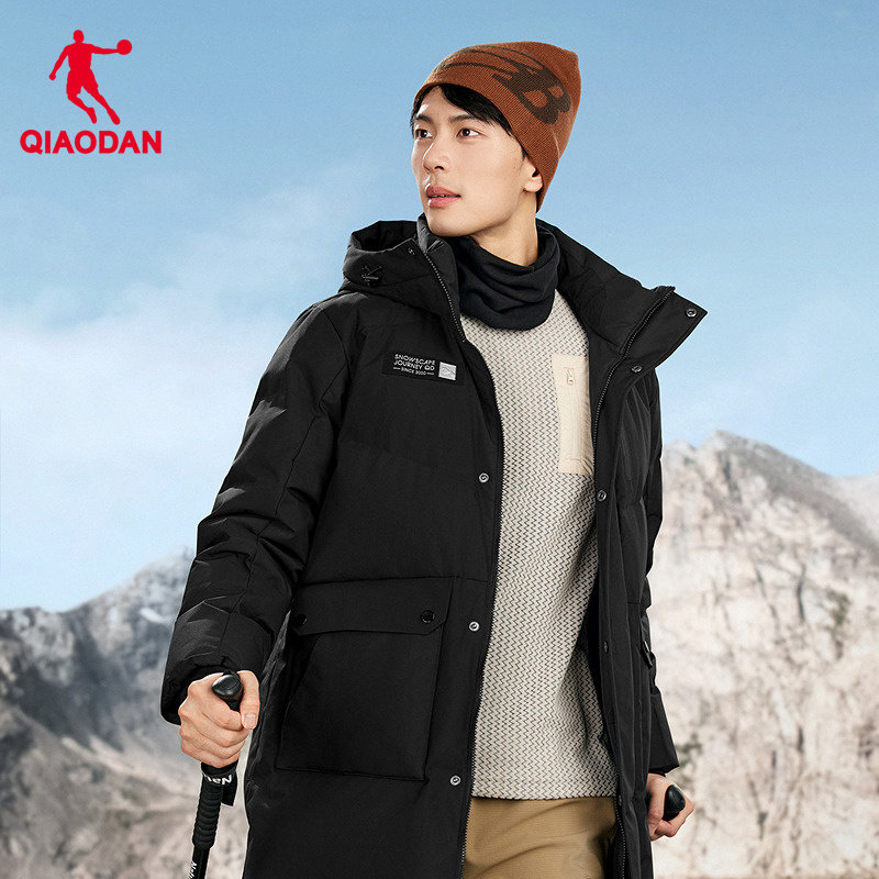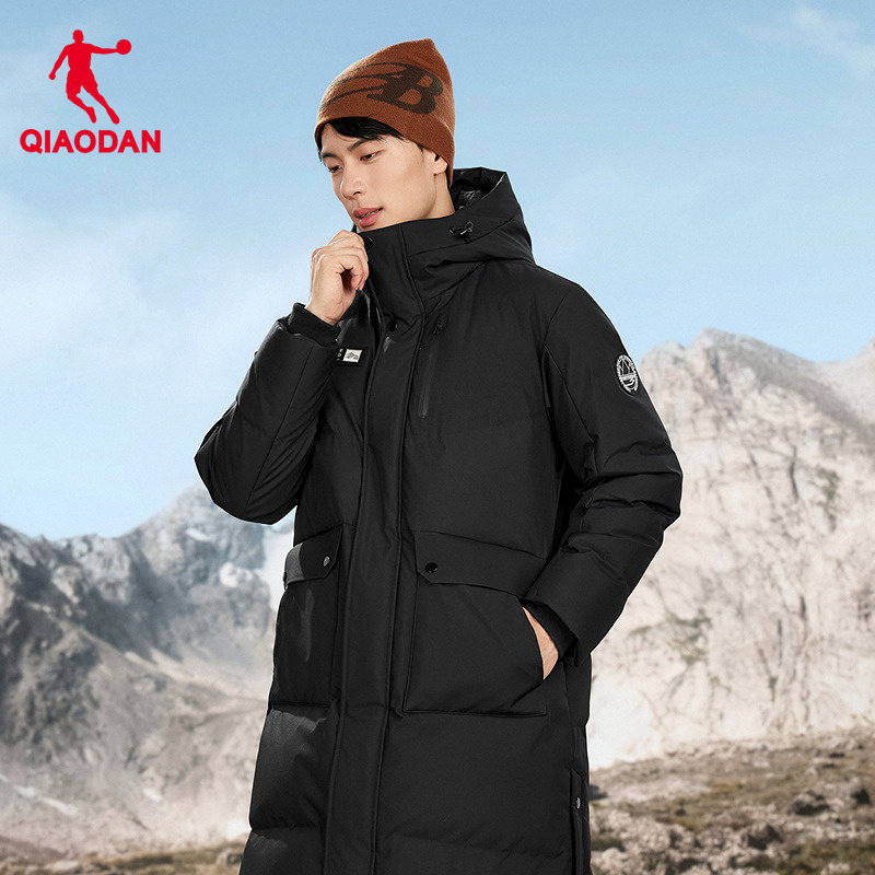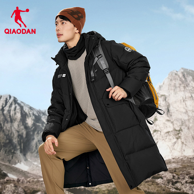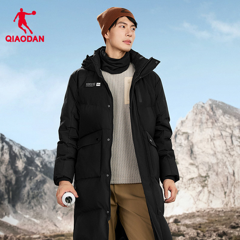 商场同款乔丹中长款羽绒服男黑色防泼水抗静电面包服QDFGM3254305