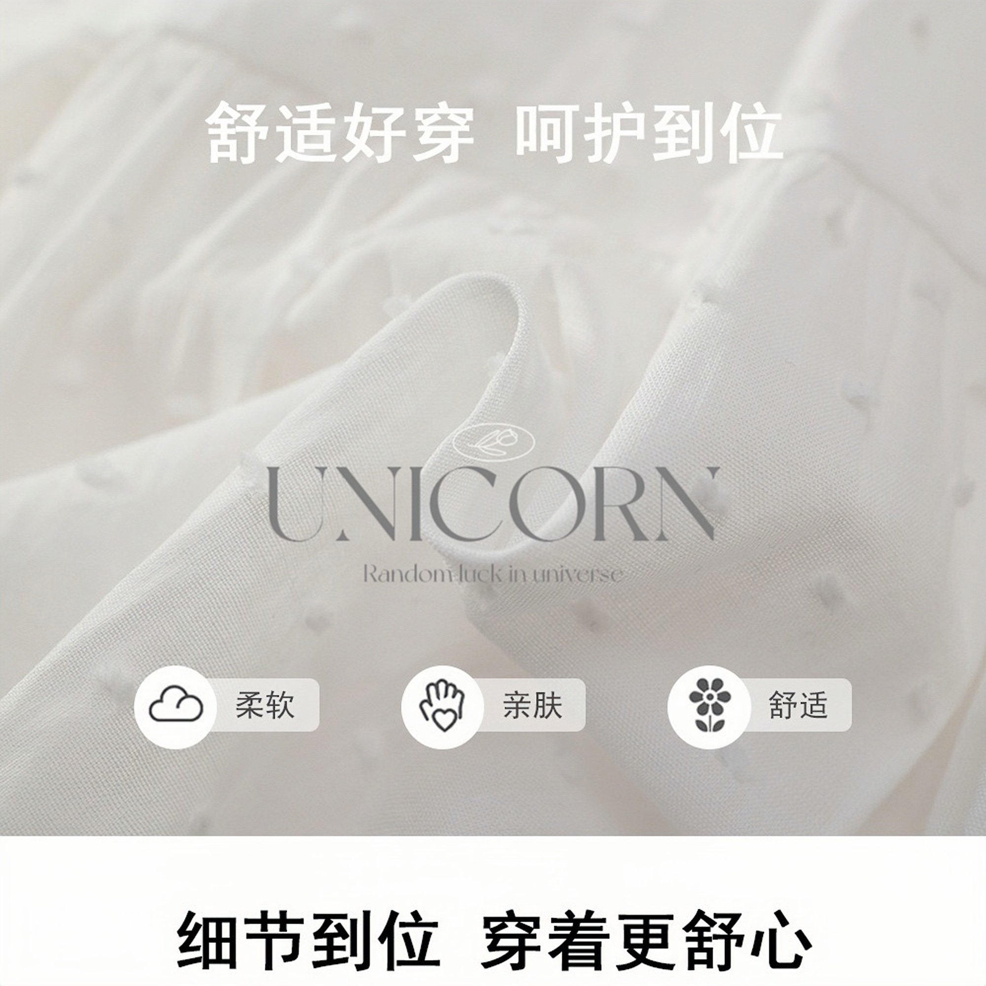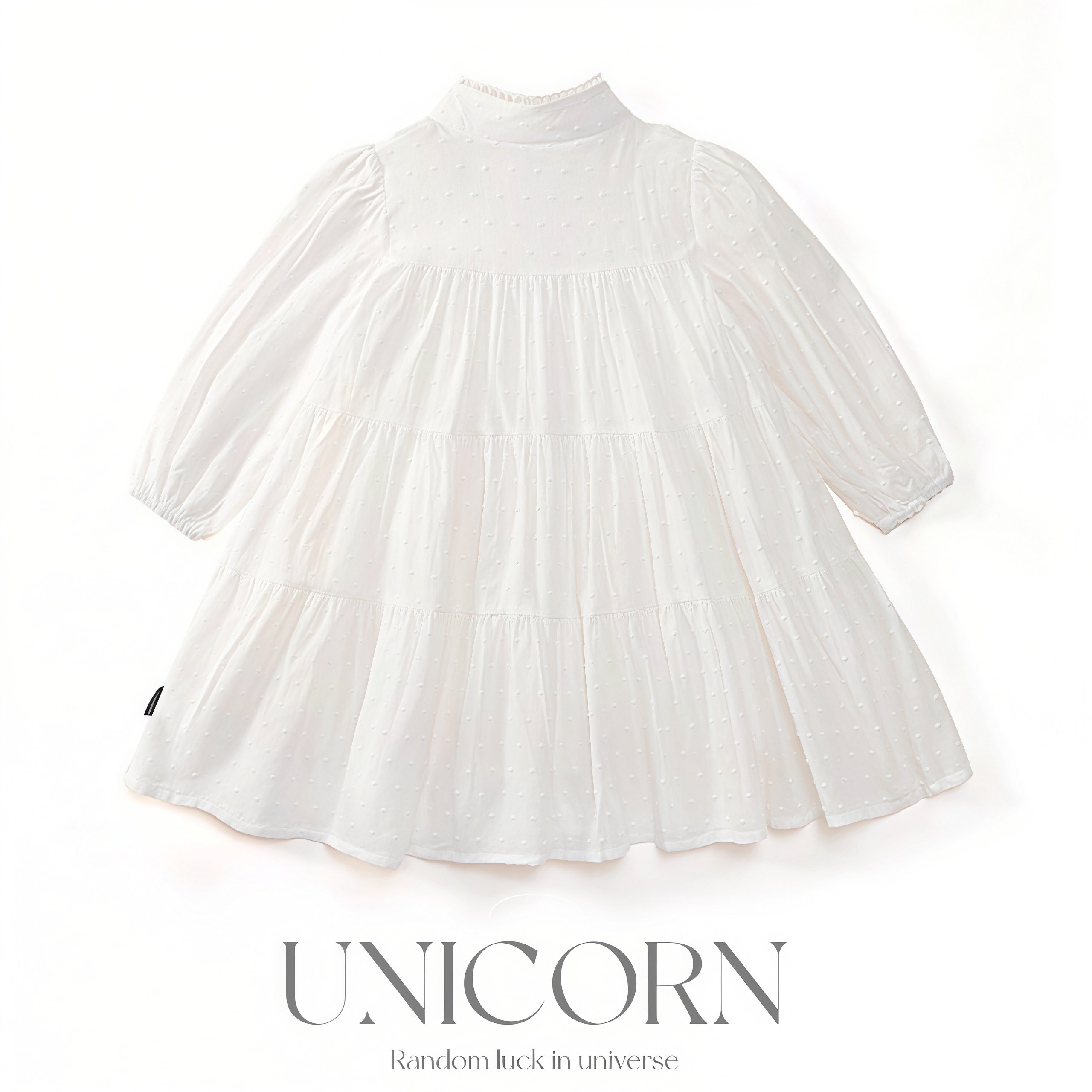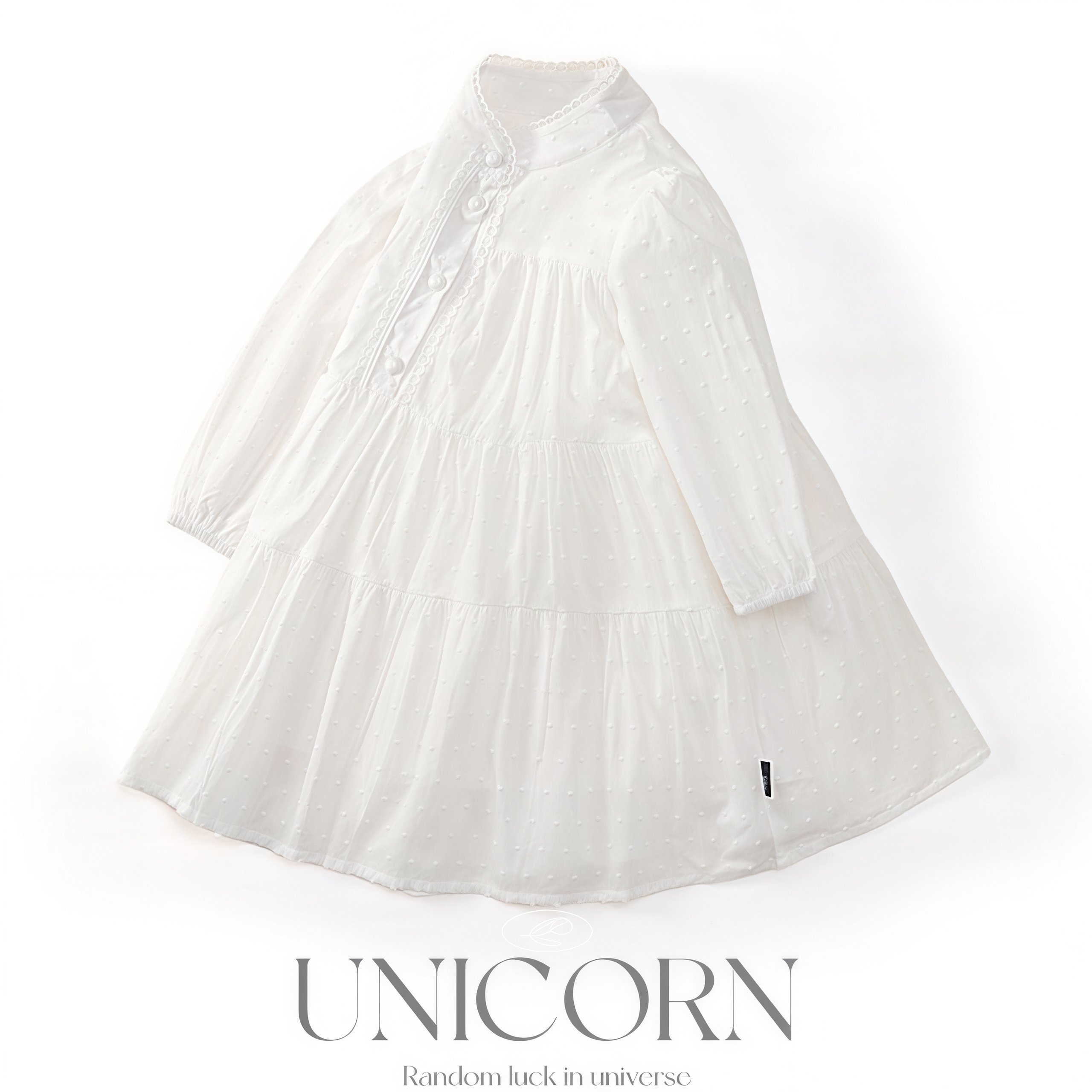 UNICORN女童26春新款韩版森系提花白色长袖连衣裙女宝公主娃娃裙