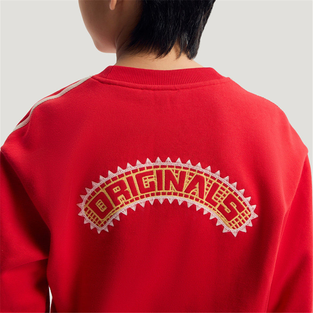 adidas阿迪达斯男大童红色新年童装拜年衣服休闲套头衫卫衣IA8933