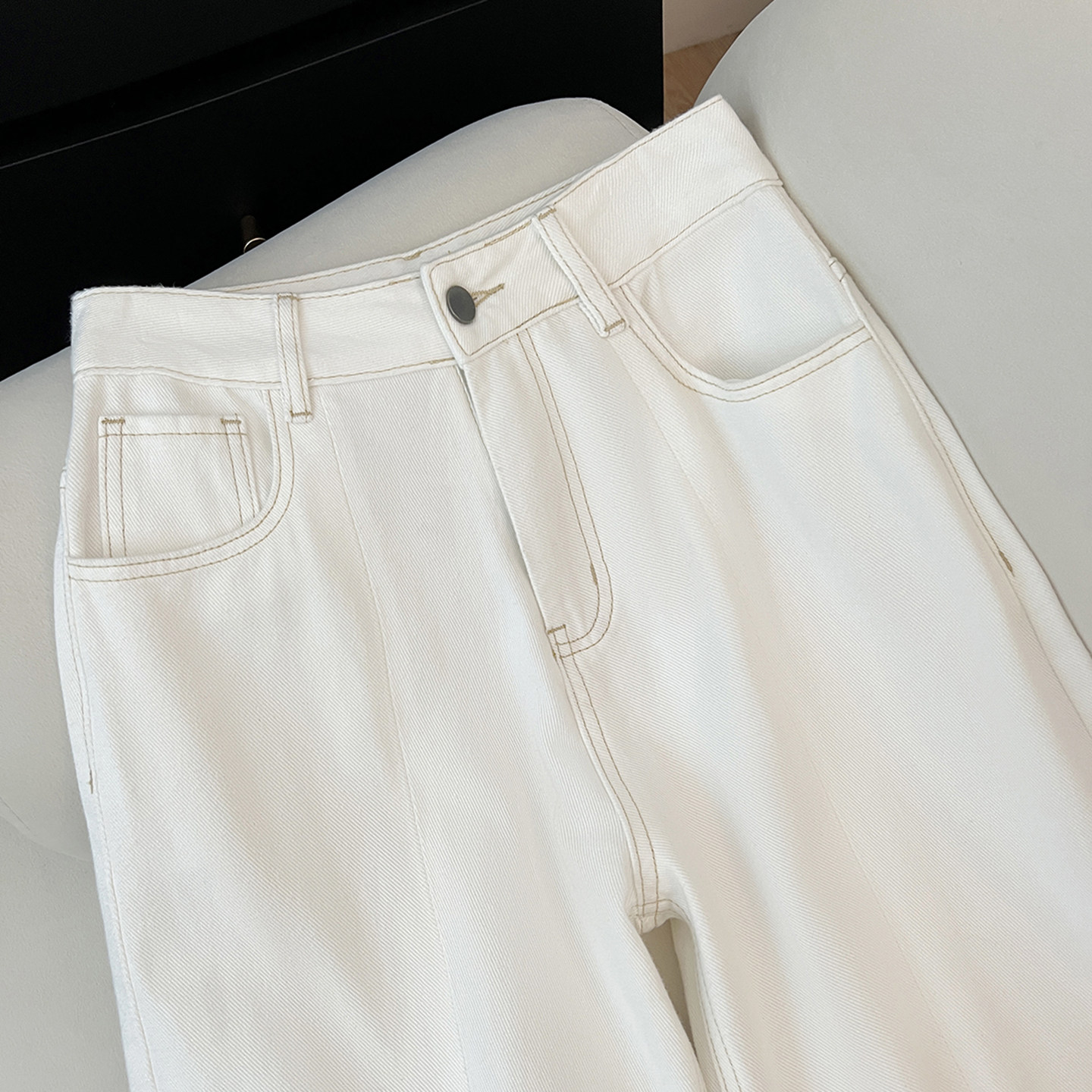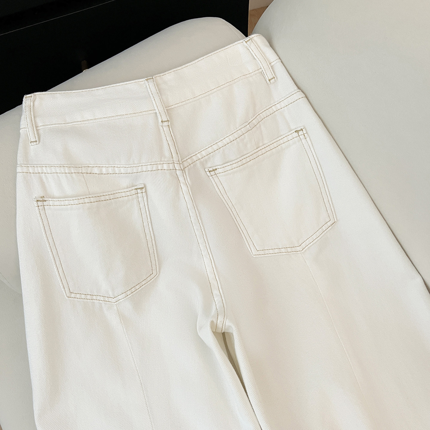 艾格2026早春新款百搭高腰显腿长女裤时尚设计感白色阔腿牛仔裤子