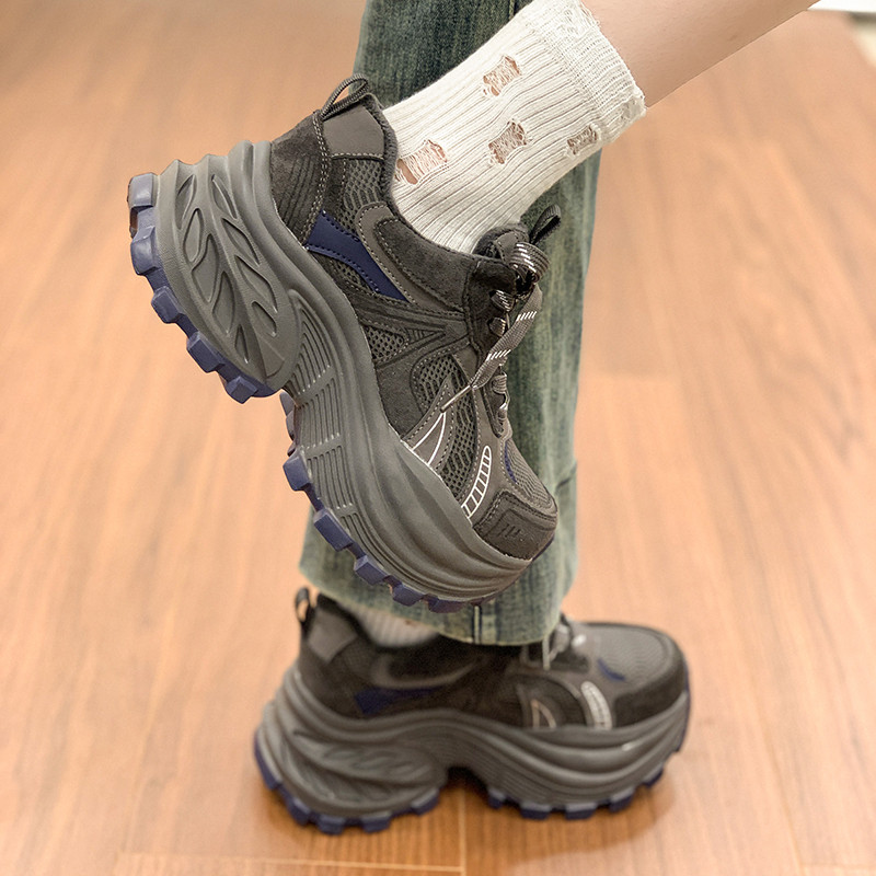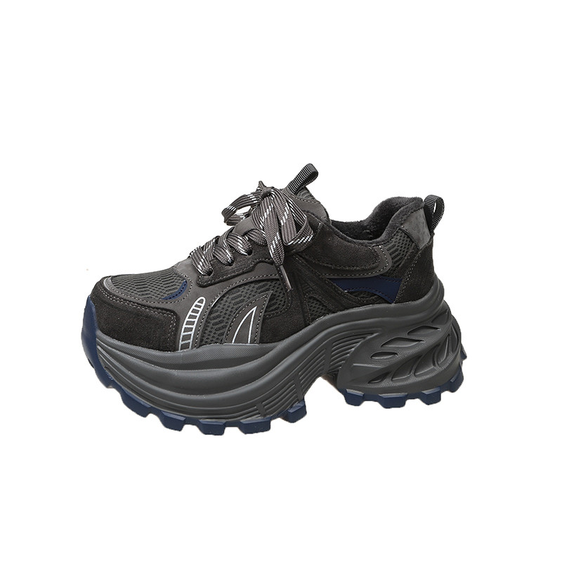 8cm增高厚底老爹鞋女款2025新款冬季加绒爆款真皮超火运动休闲鞋