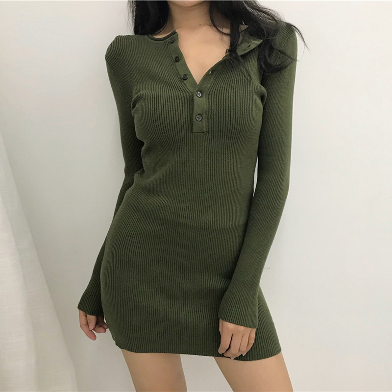 针织毛衣裙短款包臀修身显瘦性感紧身打底衫长袖小个子连衣裙秋冬
