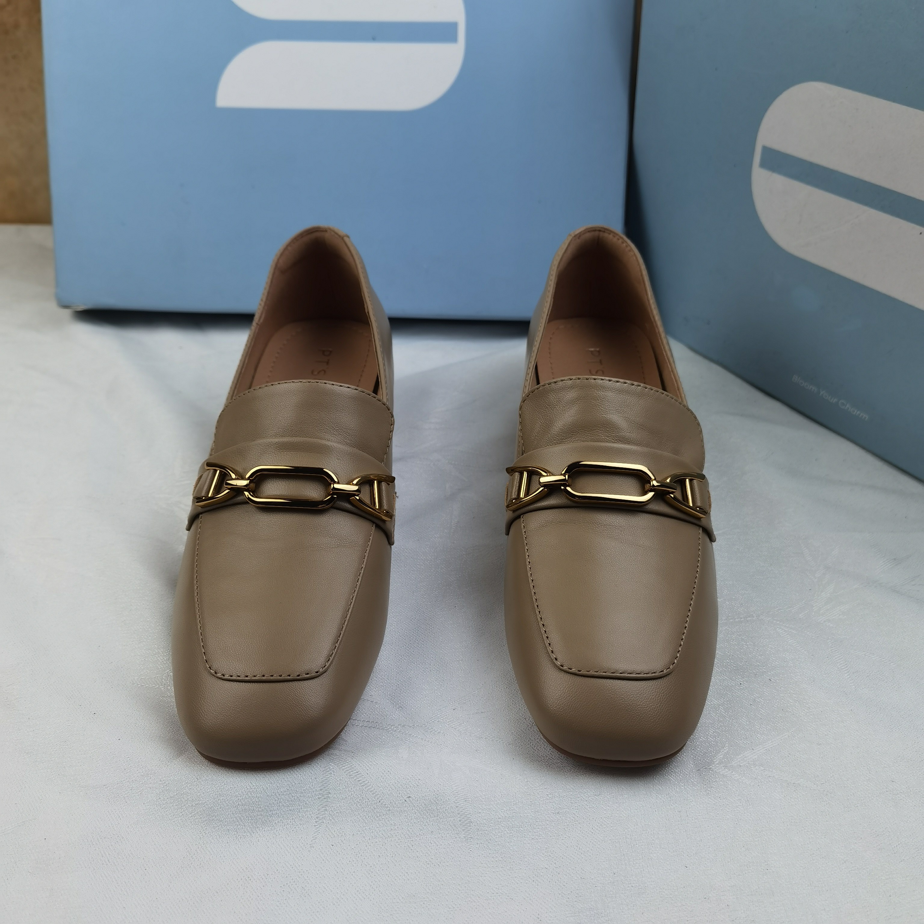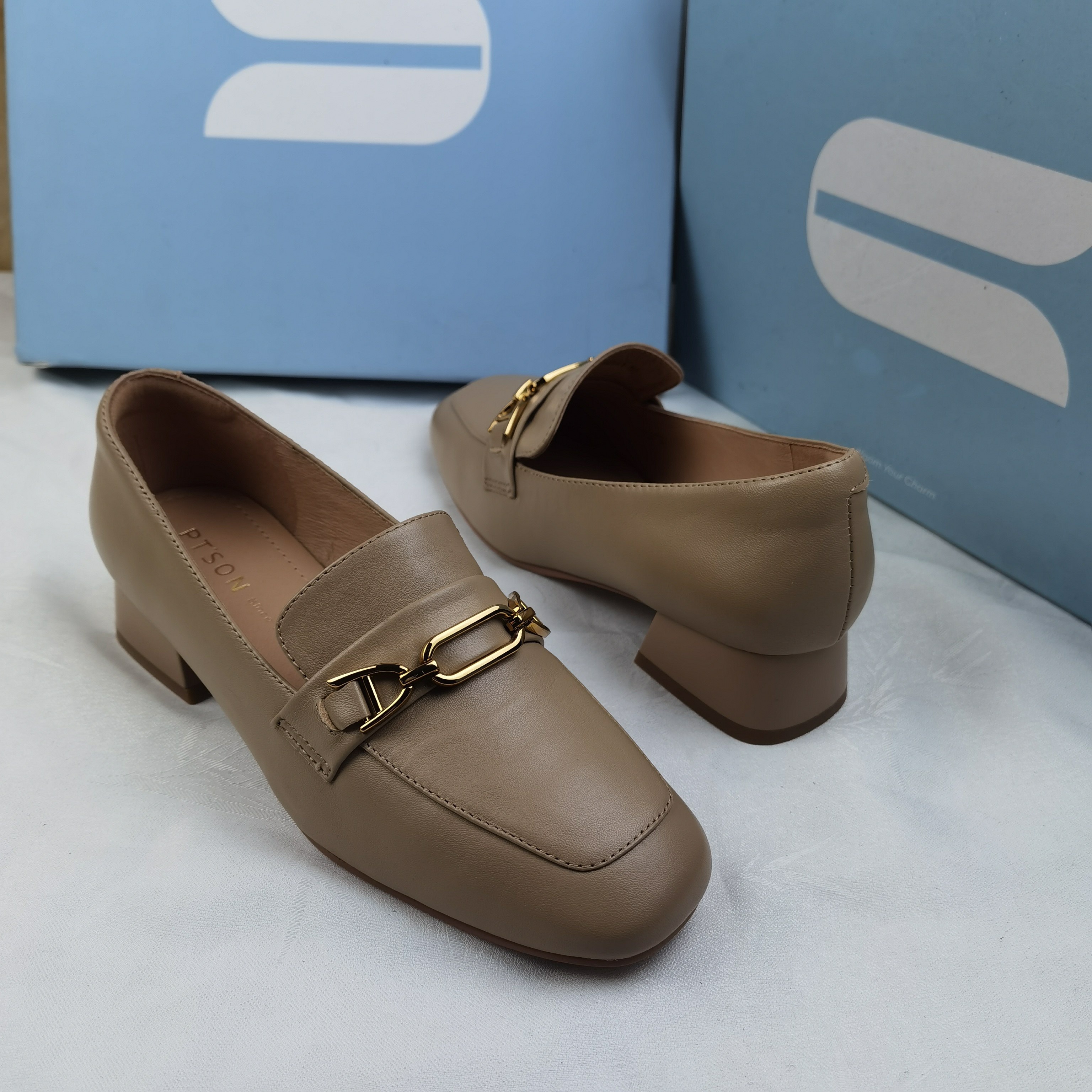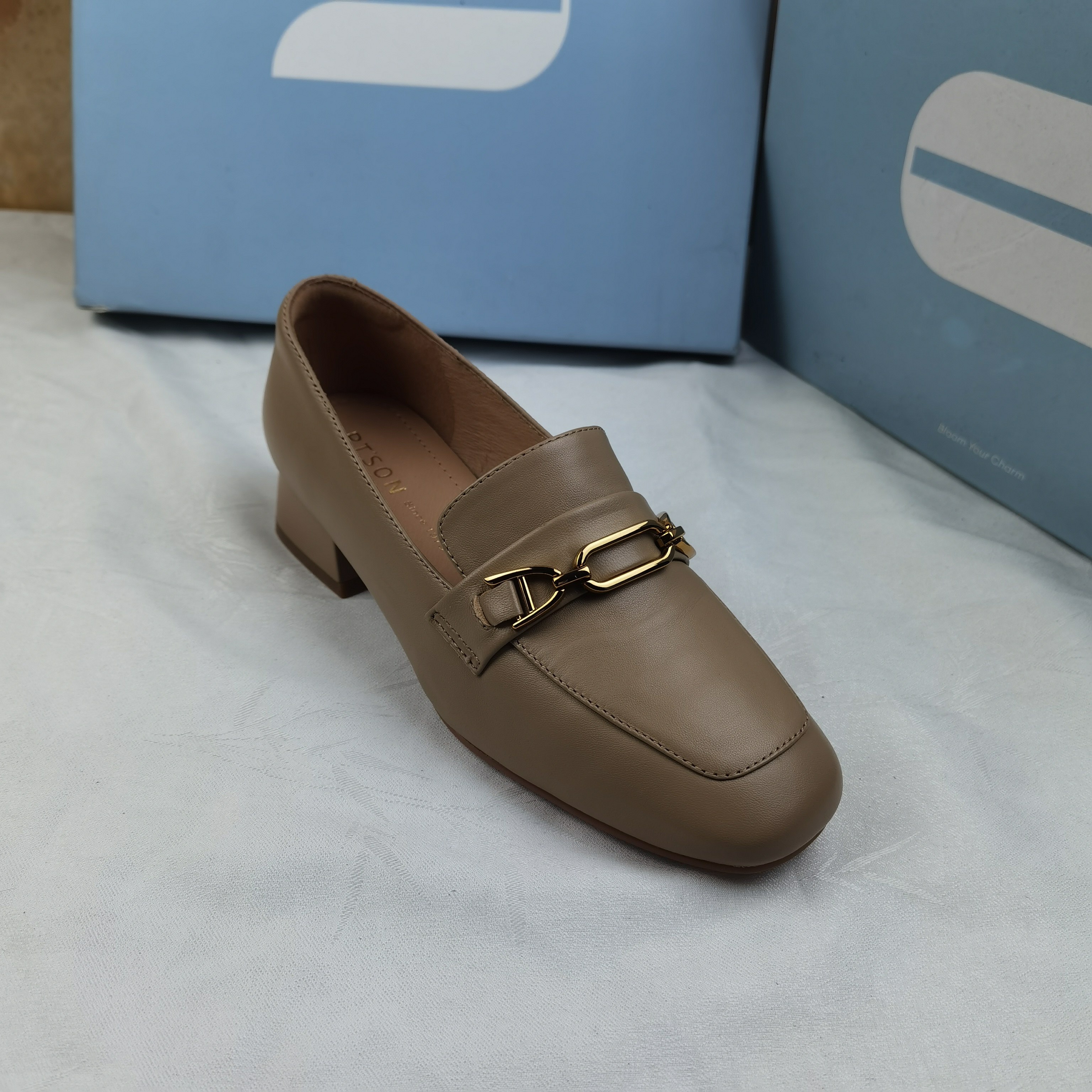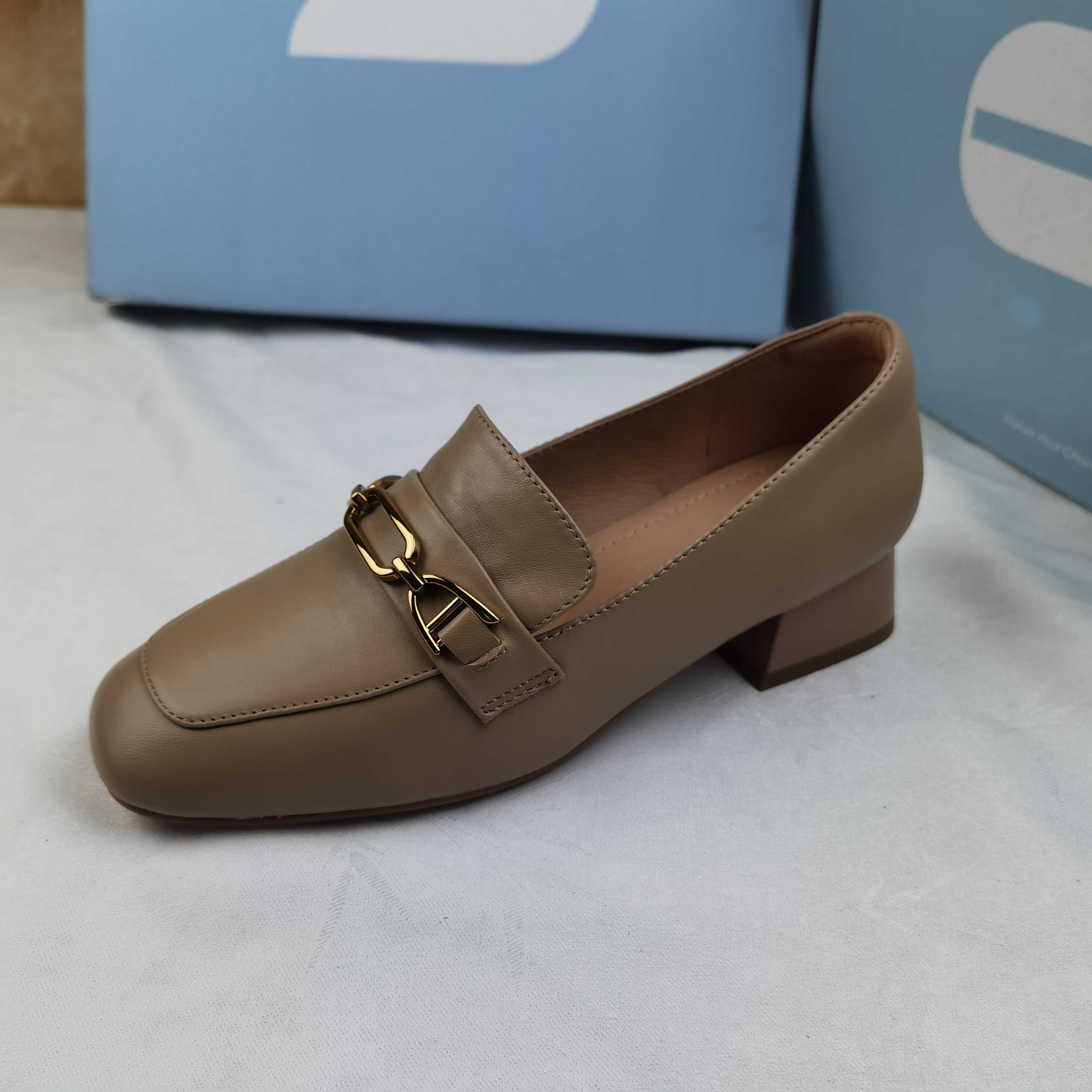 品牌正品商场同款新款女鞋休闲鞋乐福鞋女鞋粗跟23695杏色35/36码