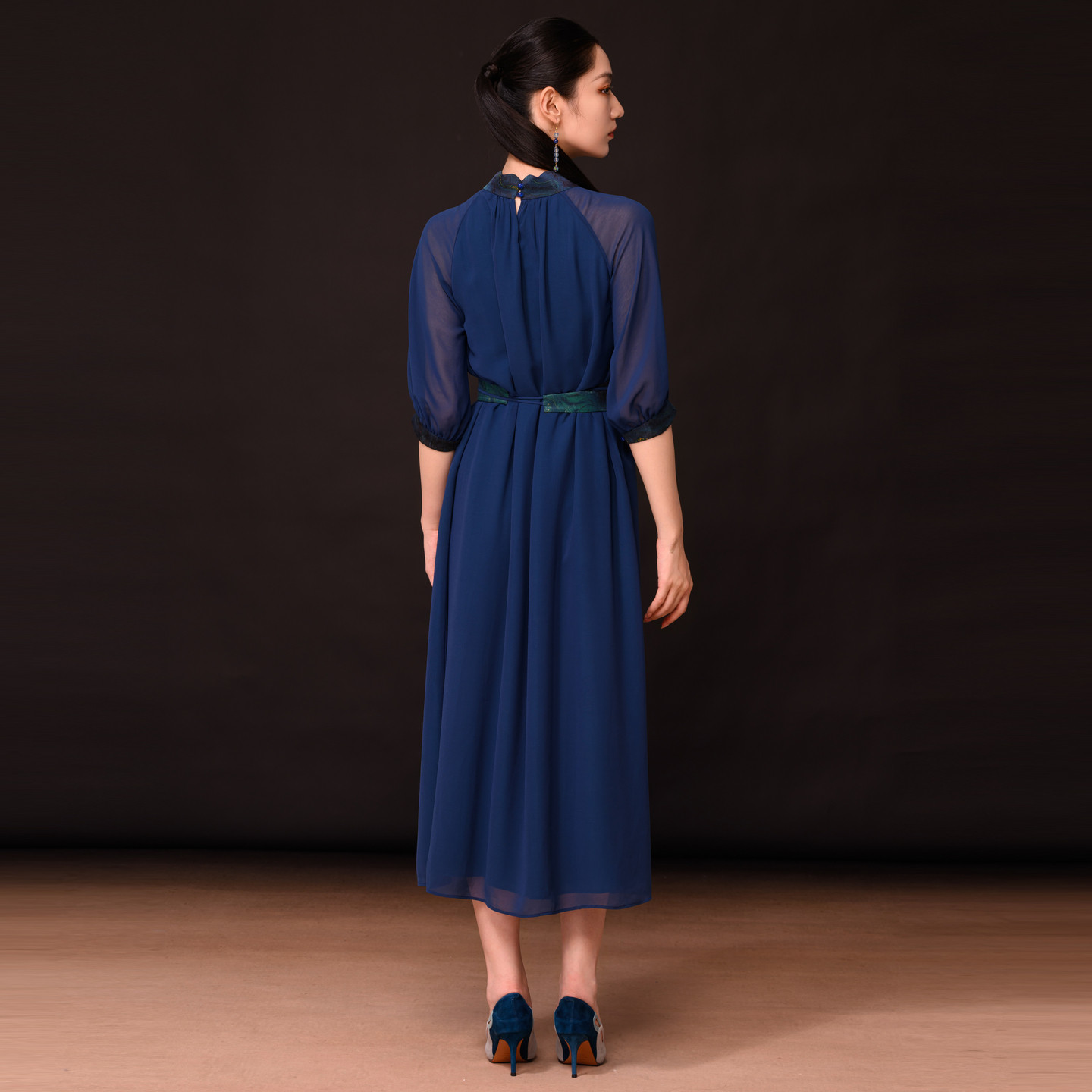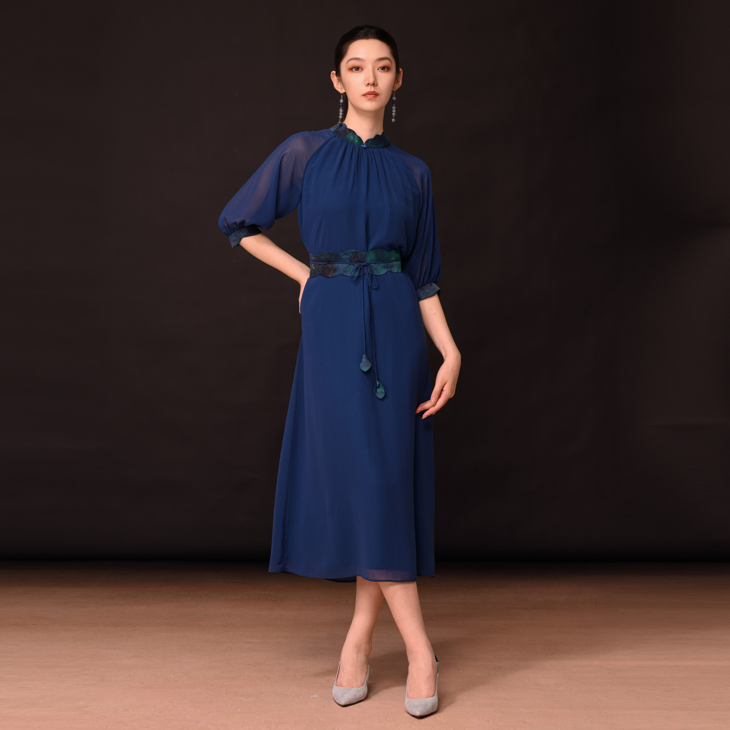 吉祥衣家新中式国风新款桑蚕丝高定女装长裙气质长袖连衣裙春秋款