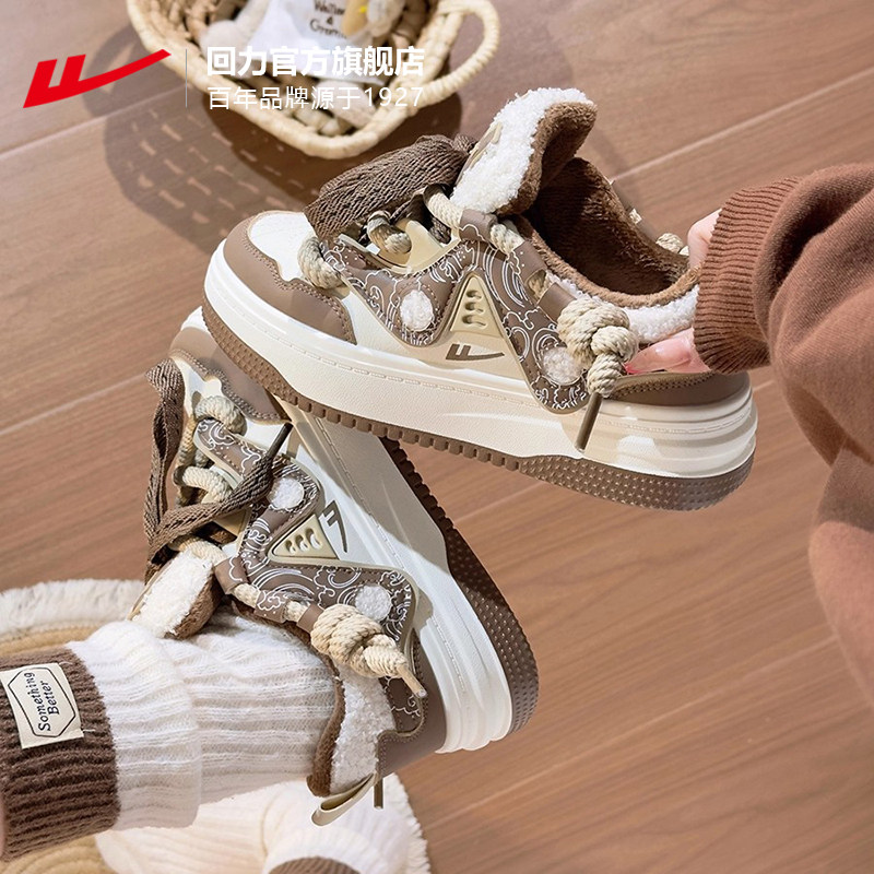 回力加绒板鞋女款2025新款冬季美拉德鞋子女鞋百搭学生厚底小白鞋