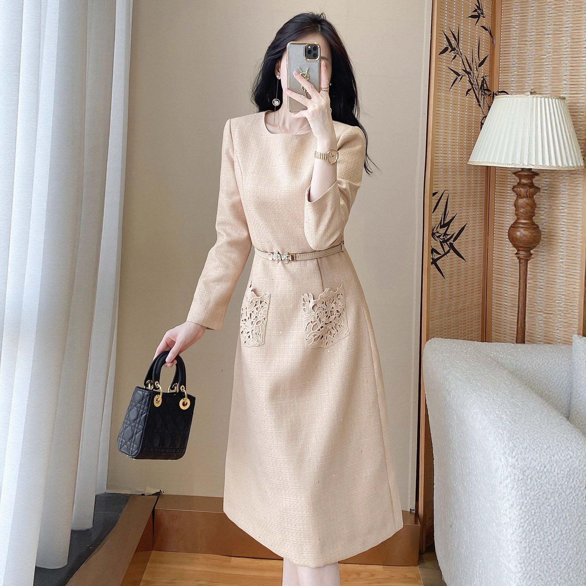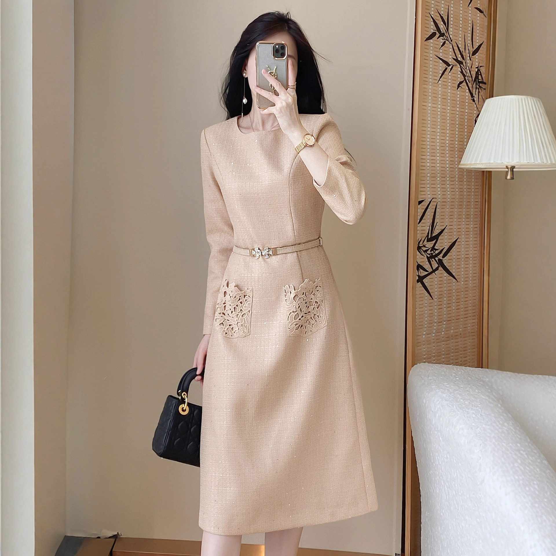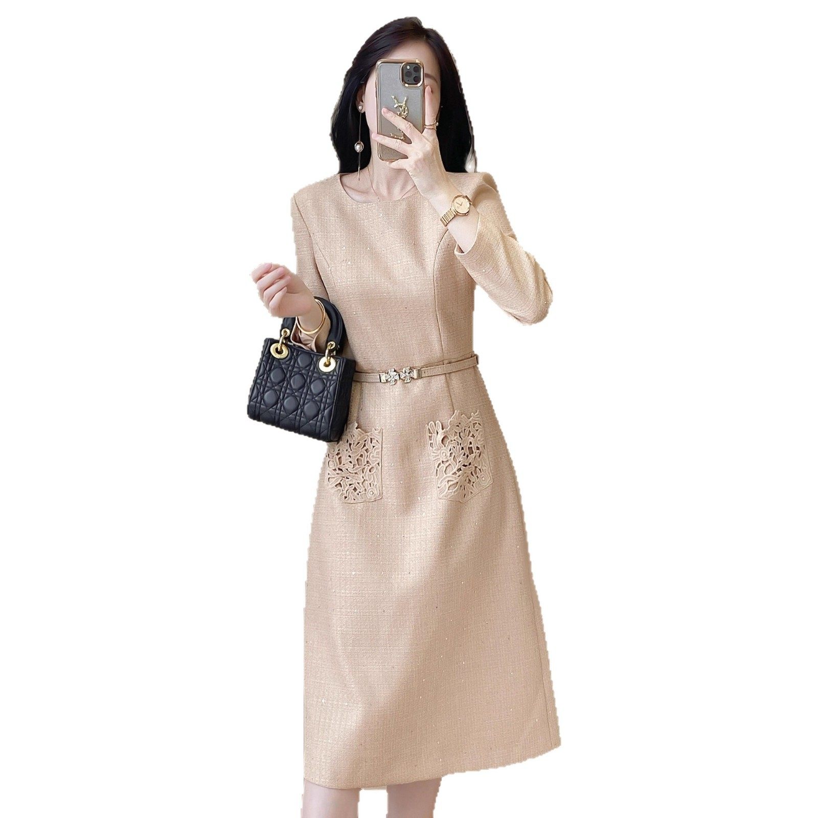 轻奢法式小香风轻奢连衣裙女装春秋款高级感气质收腰显瘦长裙