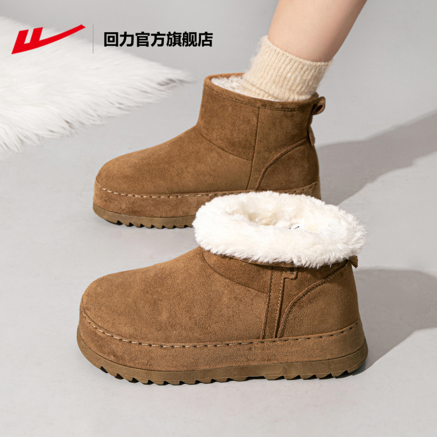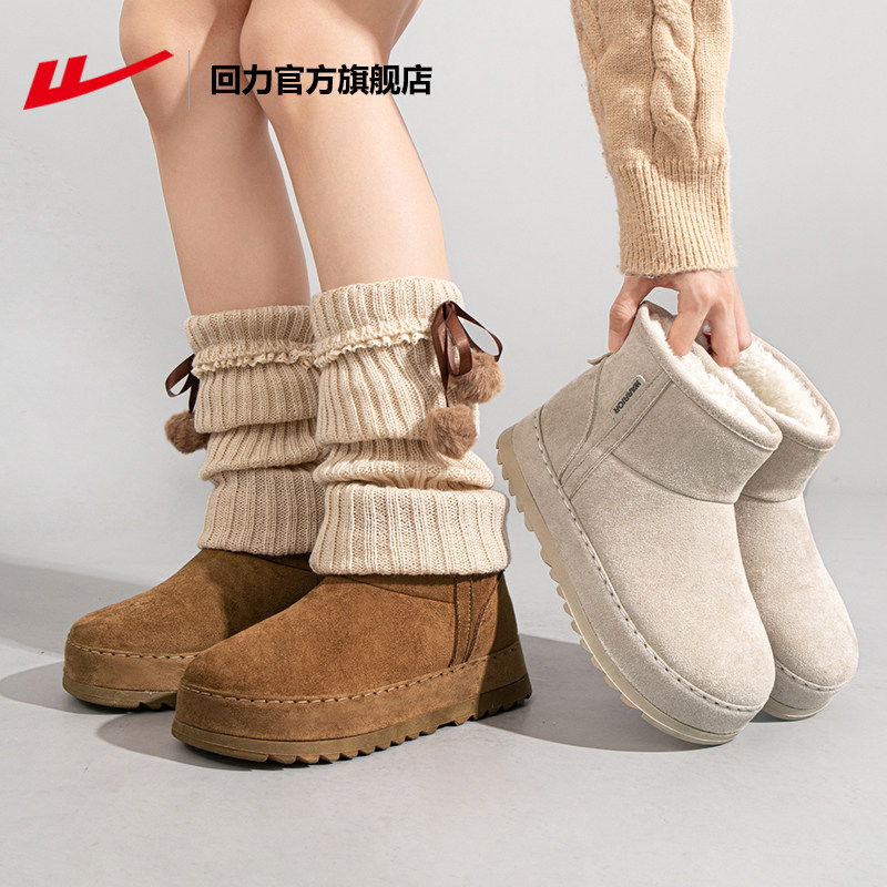 回力官方旗舰店厚底雪地靴女款冬季2025新款软底加绒保暖棉鞋女款