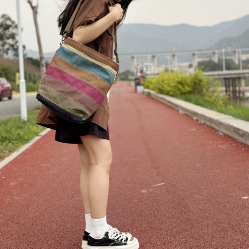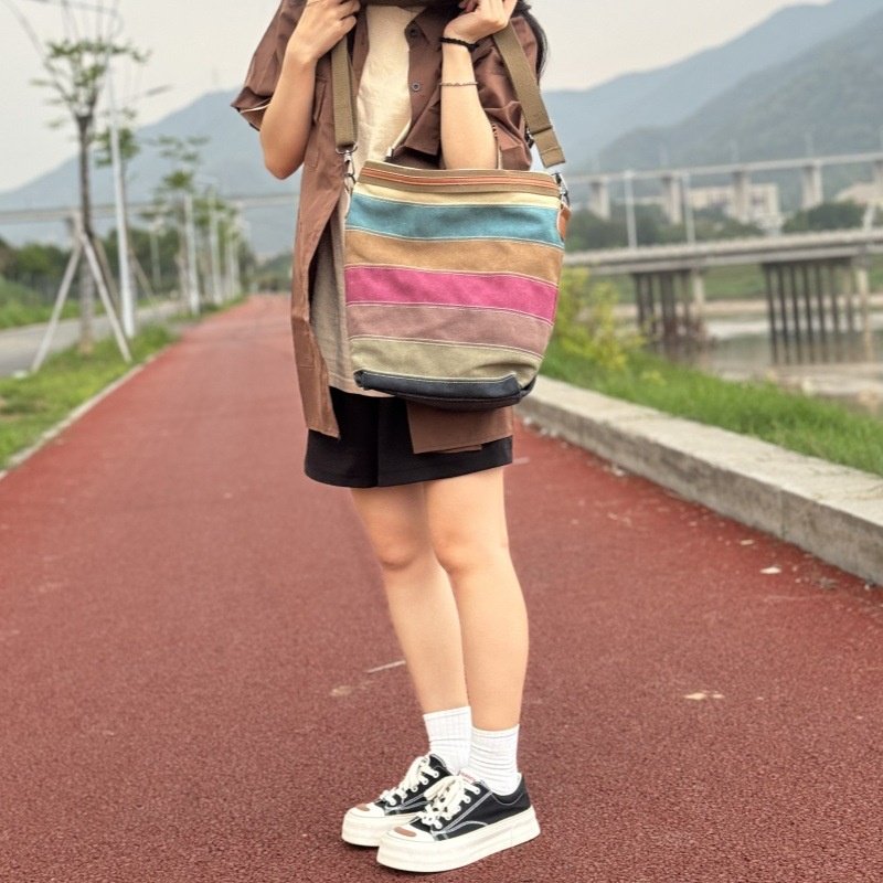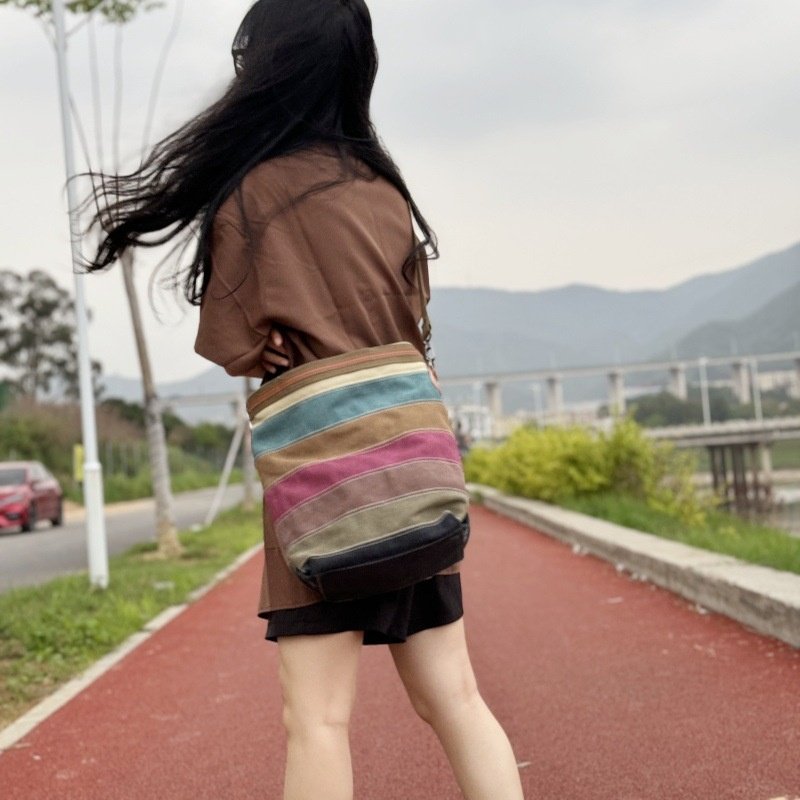 手提帆布包大容量带拉链女士包包斜挎包女托特包单肩包水桶包