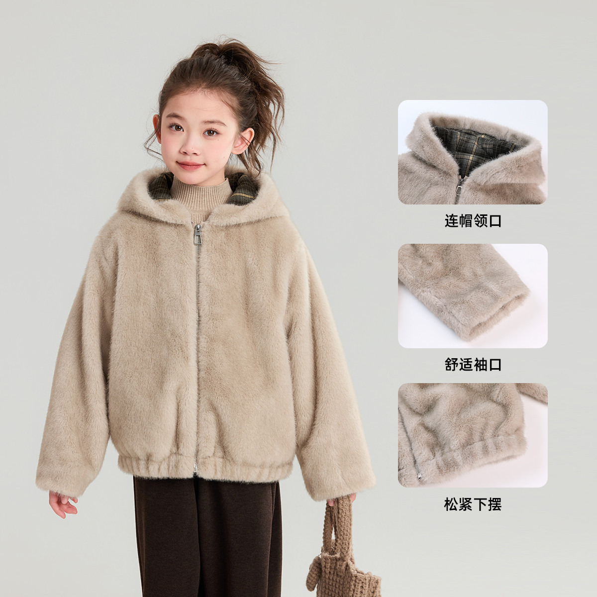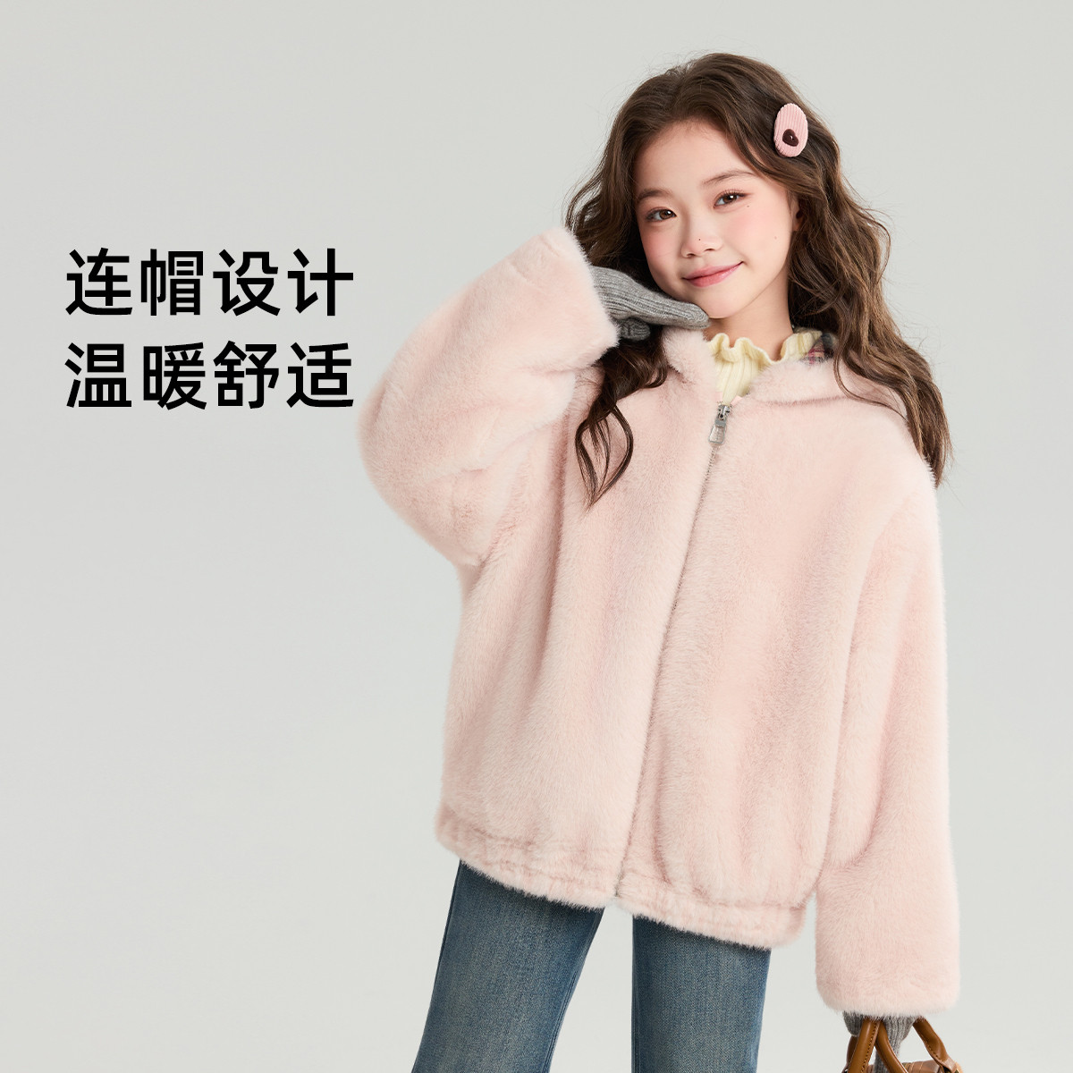 布丁哈鲁冬装女童童装洋气上衣2026秋冬季新款儿童保暖毛绒外套