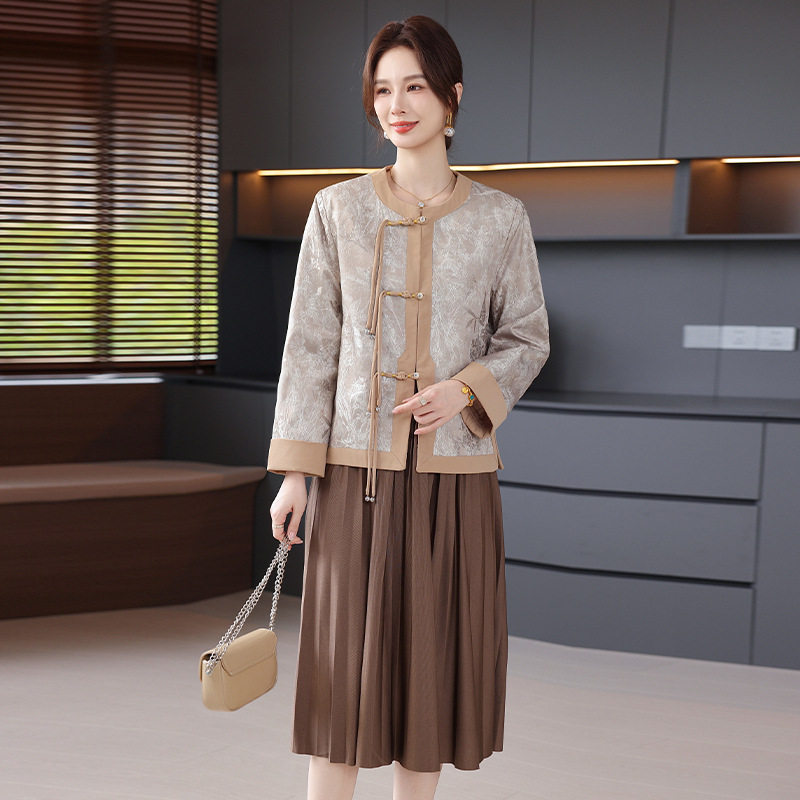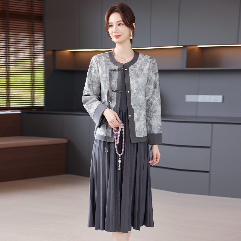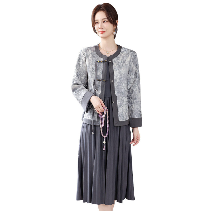 新中式妈妈春装连衣裙套装2026新款盘扣外套中老年女洋气国风裙子