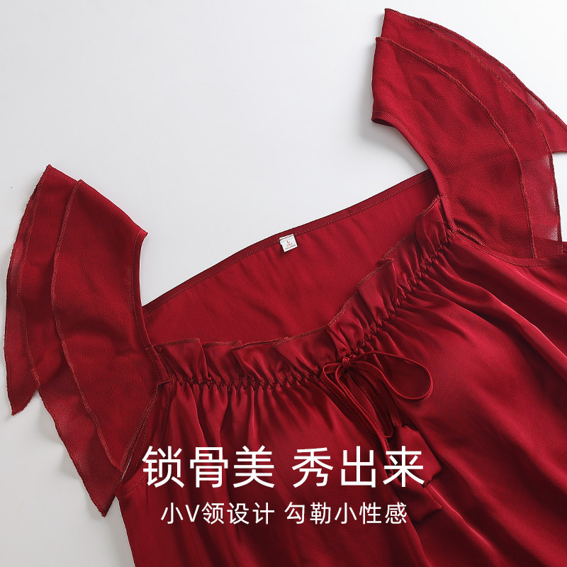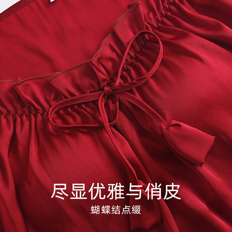 芬腾可安睡裙夏季女款冰丝凉感吊带红色本命年高级感家居服连衣裙