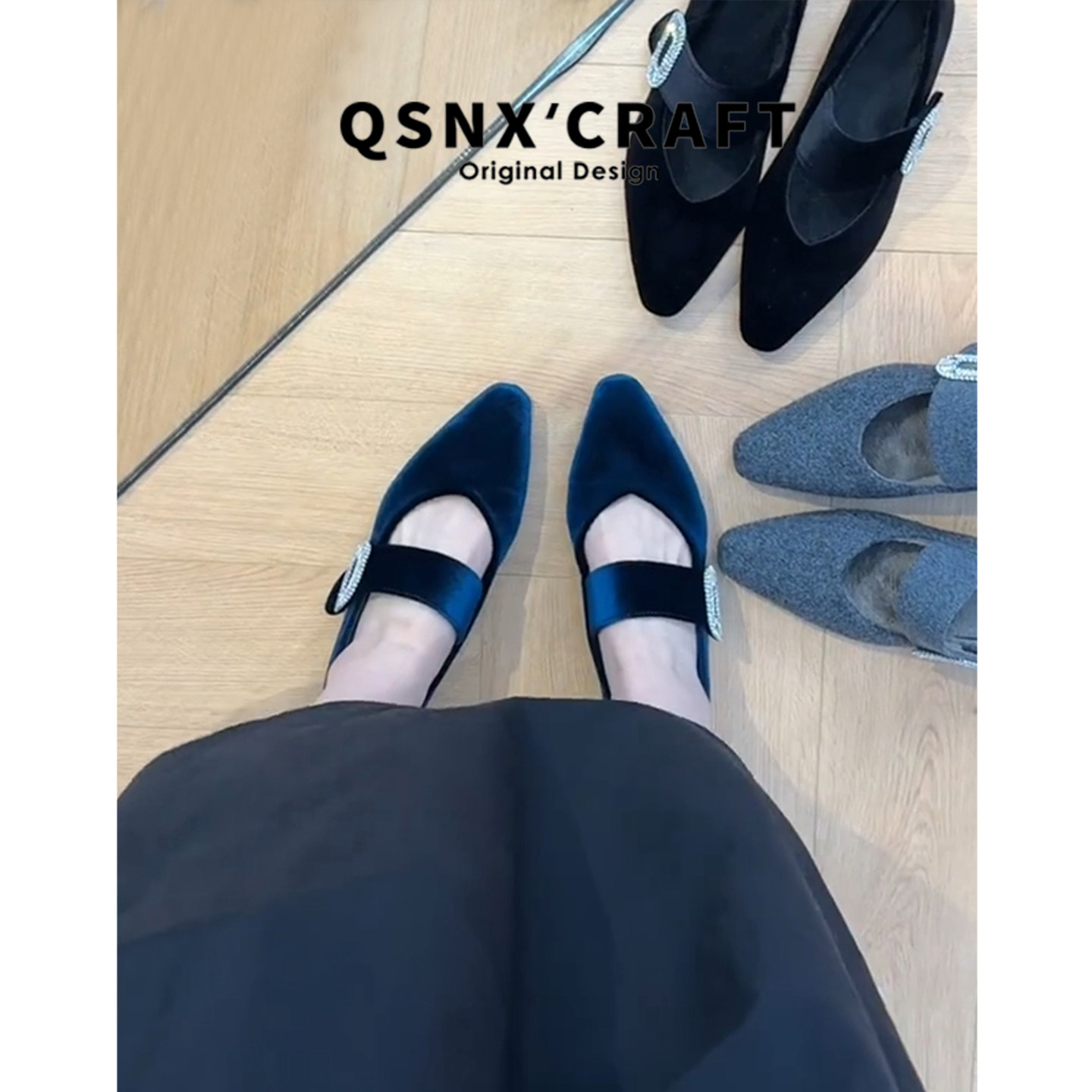 高定版~法式内增高玛丽珍鞋女2025新款水钻毛毛鞋加绒浅口单鞋子