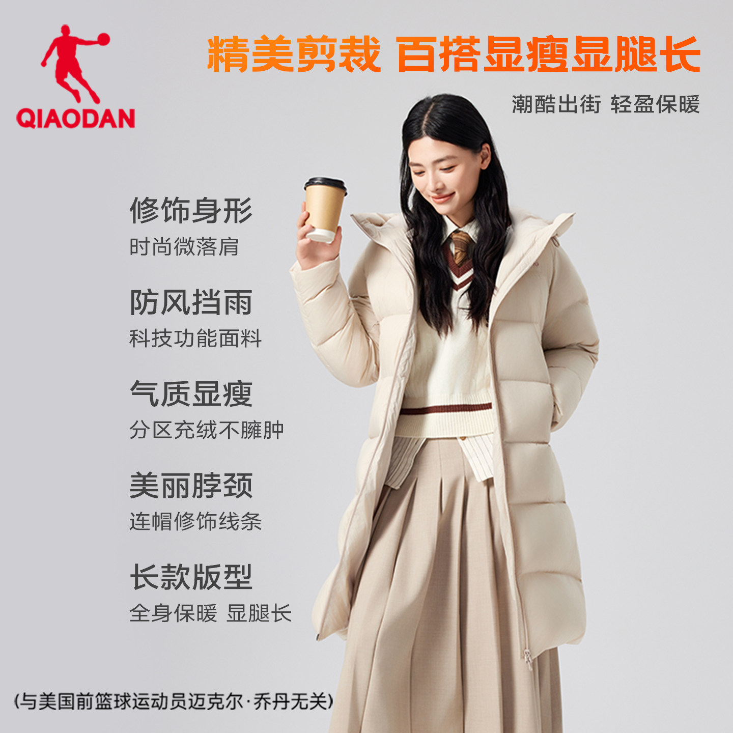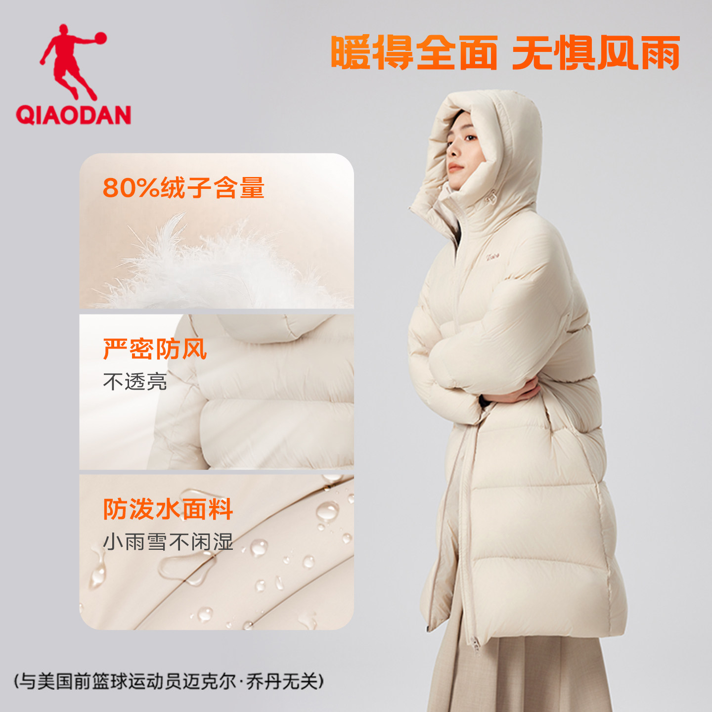 乔丹蓄热羽绒服长款女士2026冬季新款防泼水抗静电防风保暖外套