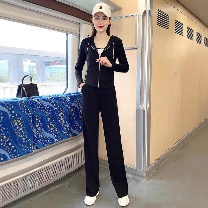 春秋运动服套装女款小个子修身开衫卫衣长裤两件套